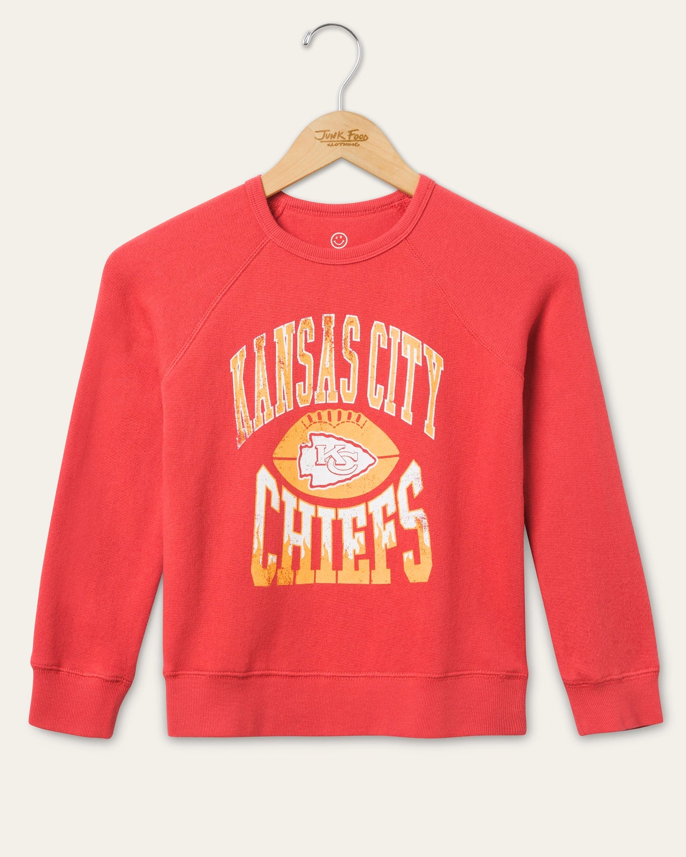 Gear up your little fan in winning style with the Kids Kansas City Chiefs Hot Route Raglan Fleece! This bold red fleece features vintage-inspired graphics, soft cozy fabric, and a relaxed fit perfect for game day or any day. Officially licensed and made for future champions!