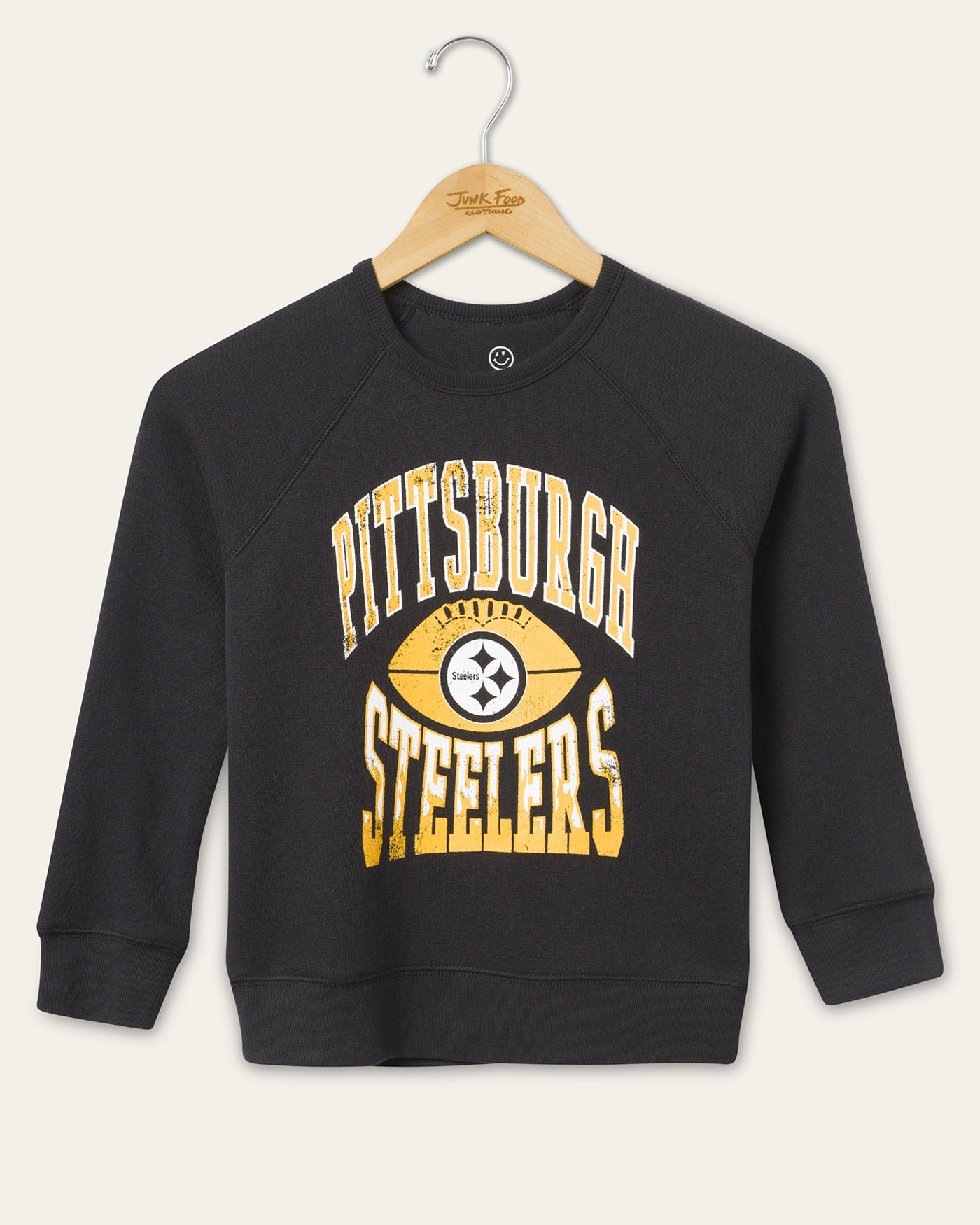 Gear up your little fan in winning style with the Kids Pittsburgh Steelers Hot Route Raglan Fleece! This bold black fleece features vintage-inspired graphics, soft cozy fabric, and a relaxed fit perfect for game day or any day. Officially licensed and made for future champions!