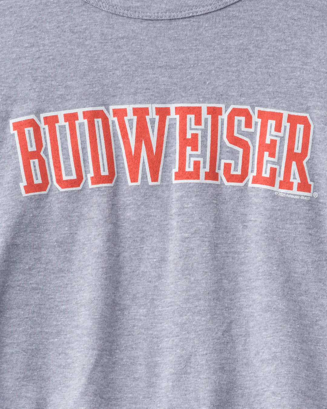 Our Women's Budweiser Baby Tee blends vintage style with modern comfort. Featuring a classic Budweiser logo, this soft, form-fitting tee is perfect for casual outings or a laid-back look. Made from breathable fabric, it offers a stylish, comfortable fit that pairs effortlessly with any outfit.
