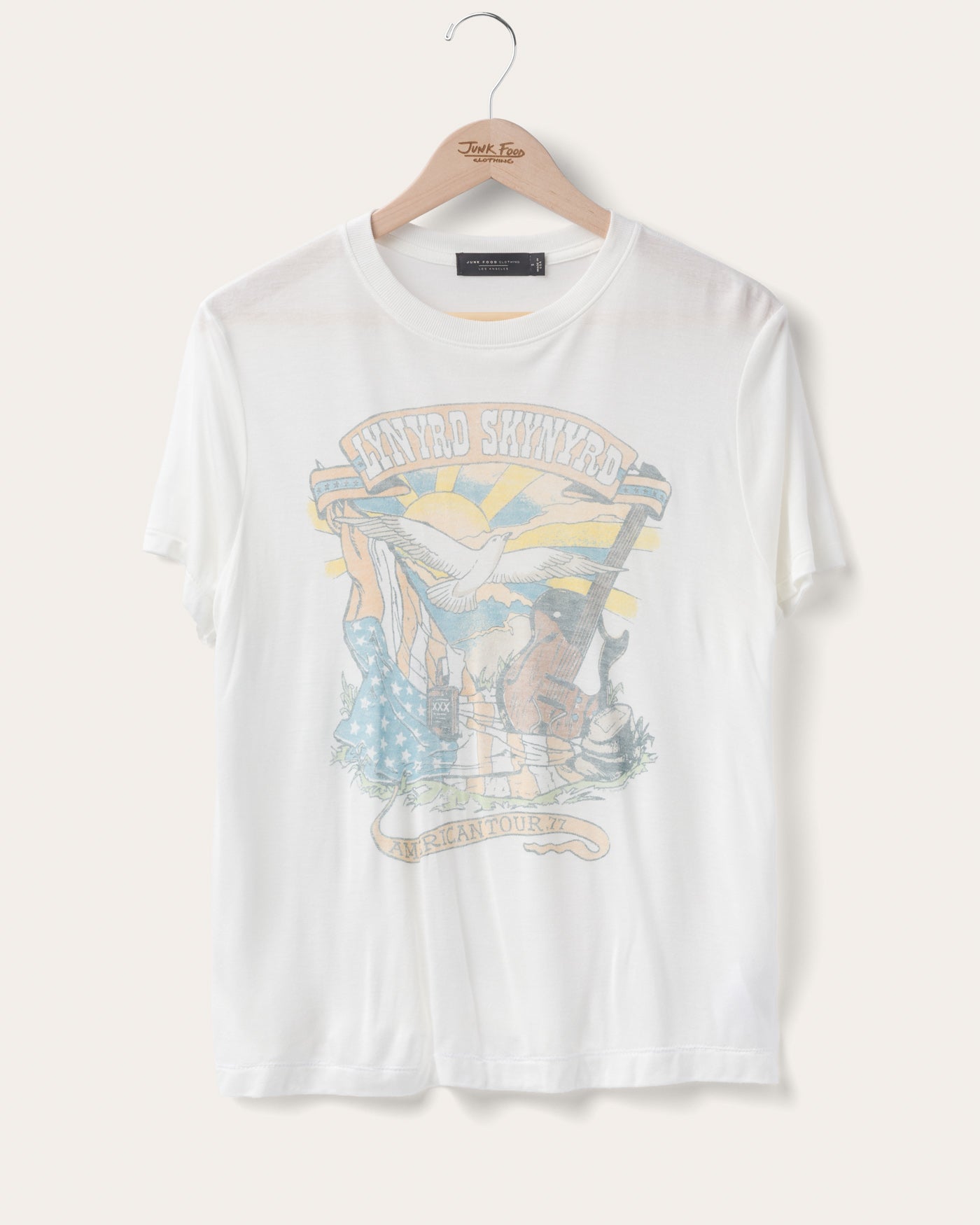 Channel the spirit of rock ‘n’ roll with our Women’s Lynyrd Skynyrd American Tour '77 Vintage Tissue Tee. Featuring a retro graphic from the legendary 1977 tour, this soft, lightweight tee offers a relaxed fit and timeless style. A perfect addition for fans who want to wear rock history with casual flair.