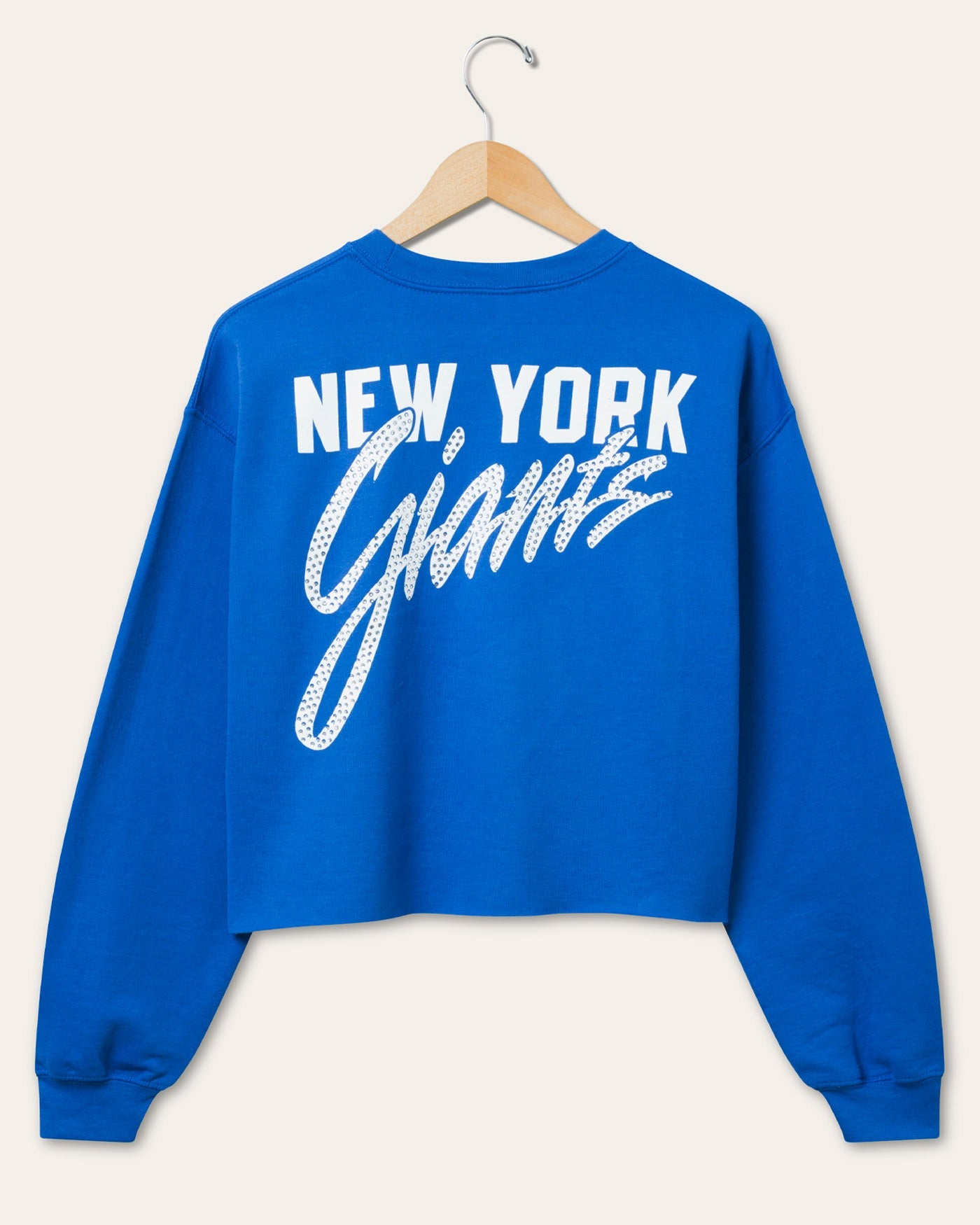 Bring the sparkle to game day with the Women’s New York Giants Bling Flea Market Crop Fleece. Featuring bold team graphics elevated with rhinestone details, this cropped fleece blends vintage inspired style with glam. It’s the perfect piece for Giants fans who love a little extra shine.