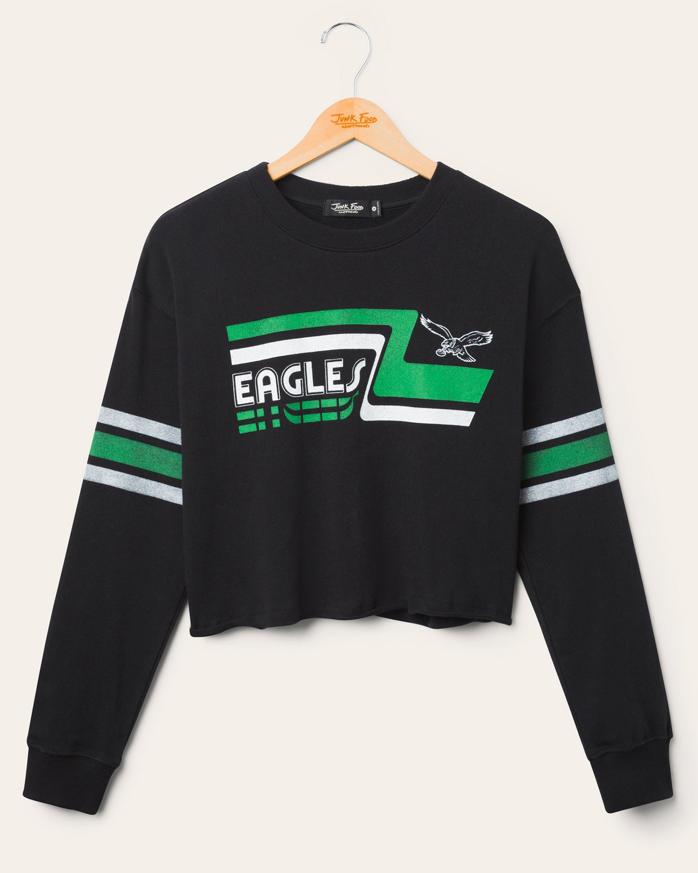Throw it back in style with the Women's Philadelphia Eagles Retro Crop Fleece. This cozy, cropped pullover features bold vintage graphics and super soft fleece for that worn in, game day feel. Perfect for fans who love classic Eagles flair with a modern twist.