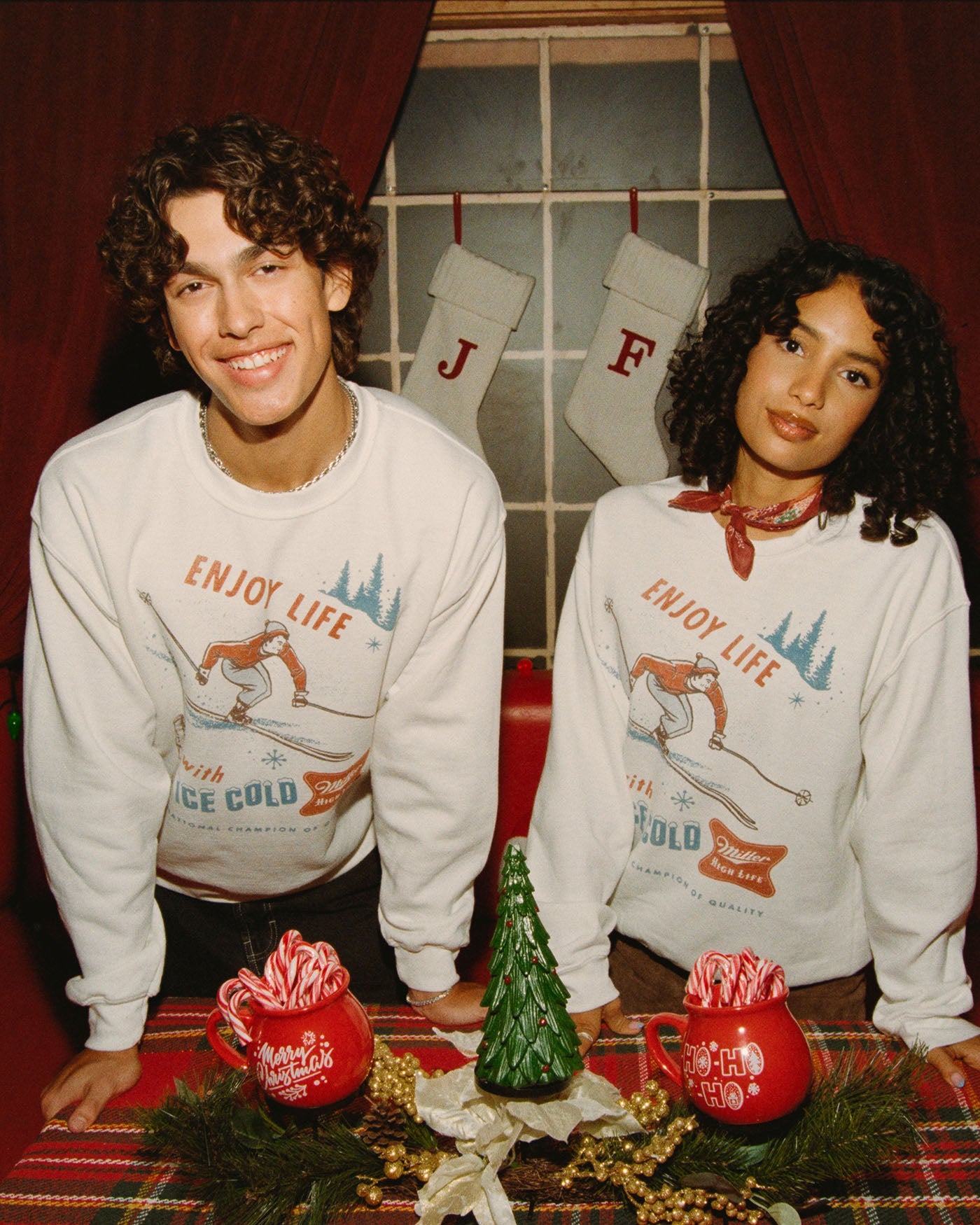 The Miller High Life Ice Cold Flea Market Fleece features a retro skier graphic with the slogan "Enjoy Life with Ice Cold Miller High Life." Combining vintage vibes with the cozy warmth of soft fleece, this design is perfect for beer lovers who want to embrace a classic, outdoorsy winter look.