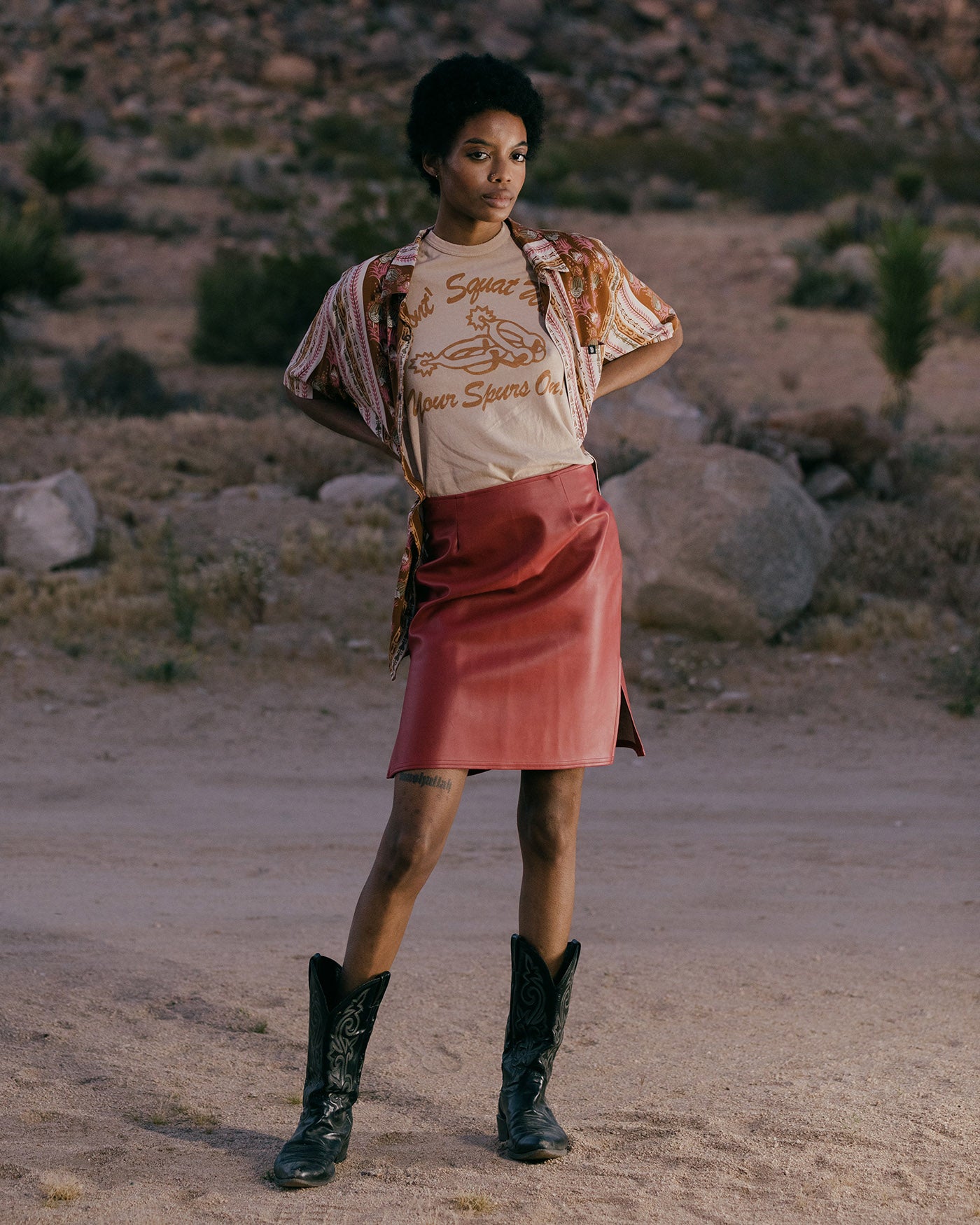 This tee runs small. For a fitted look, choose your normal size. For a regular fit, choose one size up. Model is wearing size small.