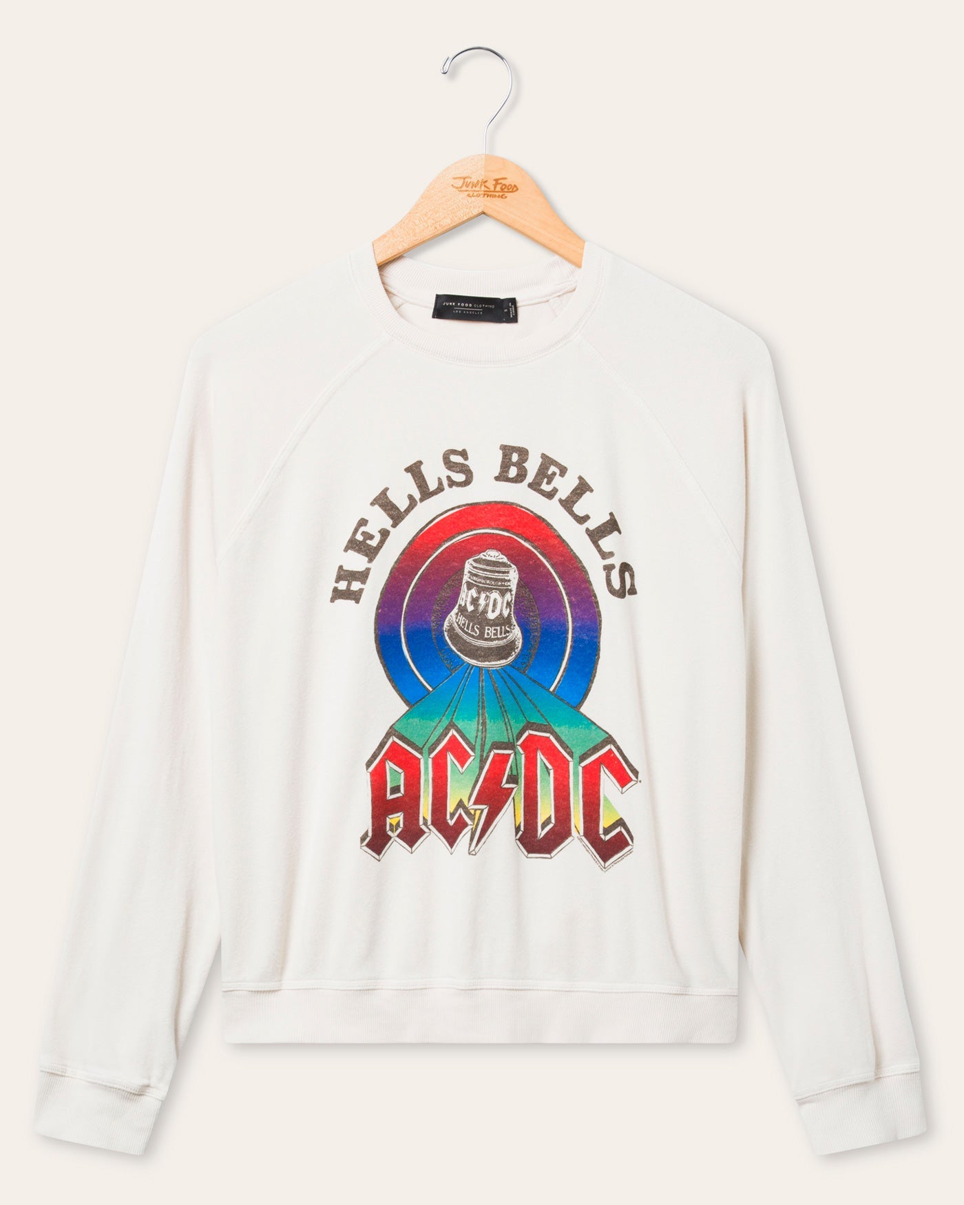 Turn up the volume with the Women’s AC/DC Hells Bells Raglan Crew Fleece. Featuring bold vintage style graphics and a soft off-white wash, this cozy fleece hits all the right notes of rock ‘n’ roll nostalgia. Comfy, classic, and ready to raise some hell in style.