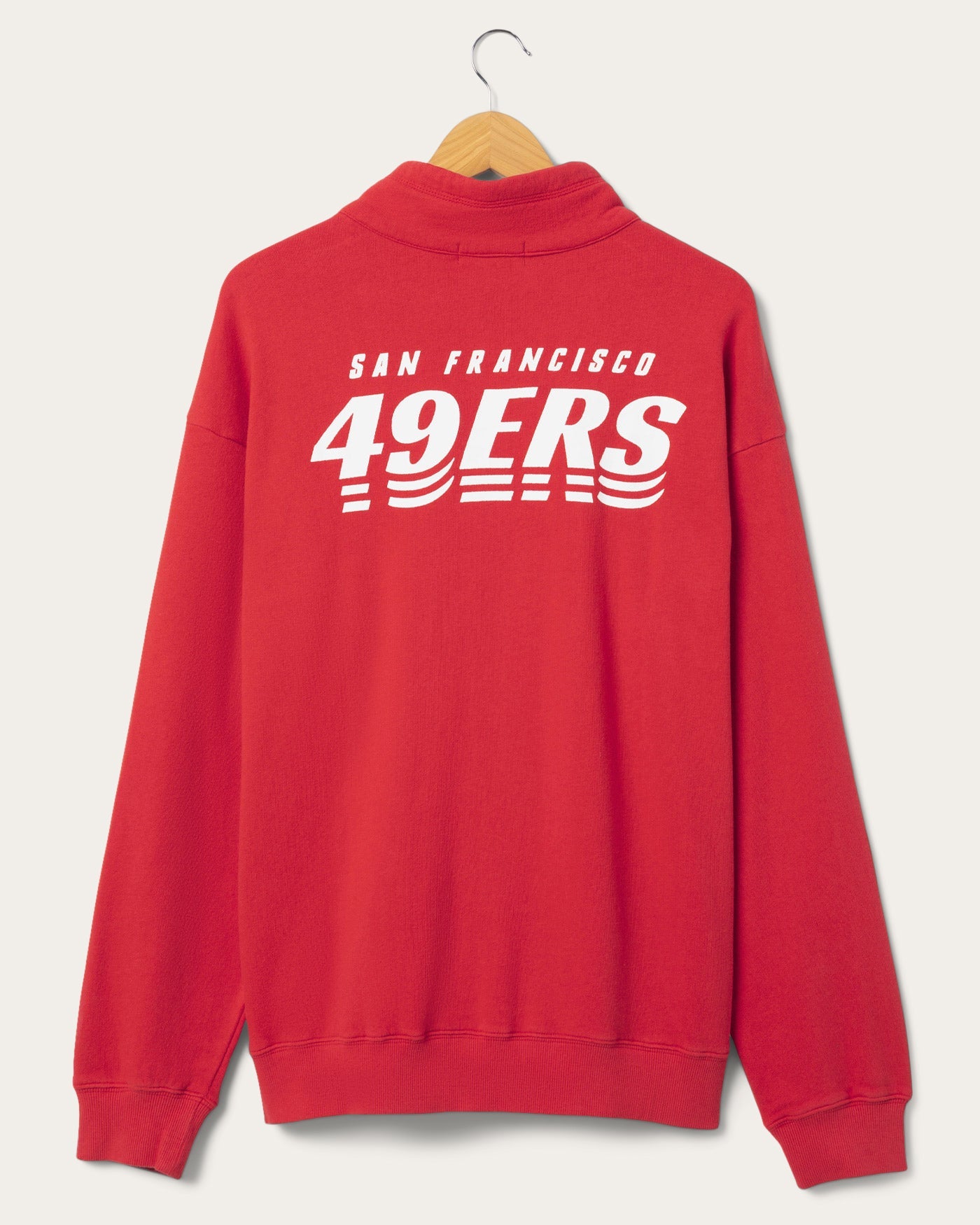 Elevate your 49ers game day look with the Mock 1/4 Button Up, an officially licensed product. This stylish top features a sleek mock neck and quarter-button closure, combining modern design with comfort. Made from soft, durable fabric, it’s perfect for showing off your team spirit in sophisticated style.