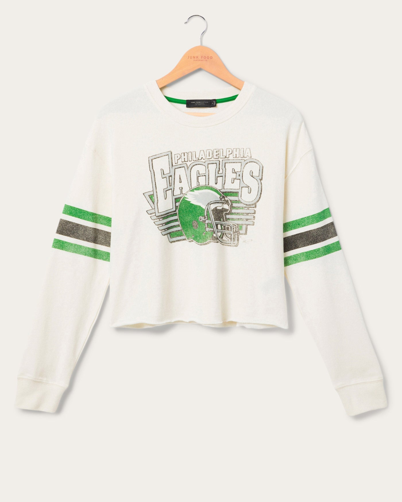 Get game-ready with the Women’s Eagles Kickoff Crop Crew Fleece. Crafted from cozy, high-quality fabric, this cropped crewneck features a bold Eagles graphic and a comfortable fit. Officially licensed, it combines warmth and style, perfect for cheering on your team or lounging in comfort.