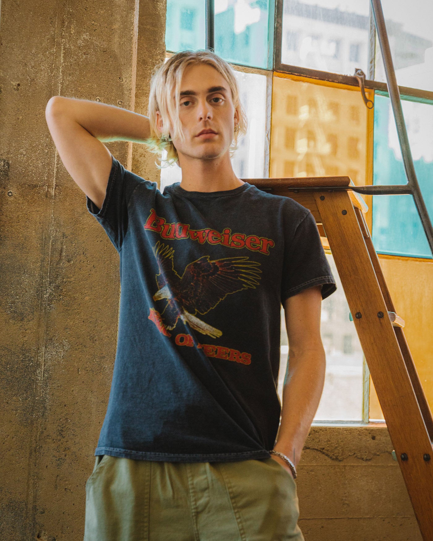 Cheers to the King of Beers! Wear the true American spirit with our Flea Market Tee. Featuring a vintage distress wash, we've made sure it looks like you spent hours digging for this old school classic.