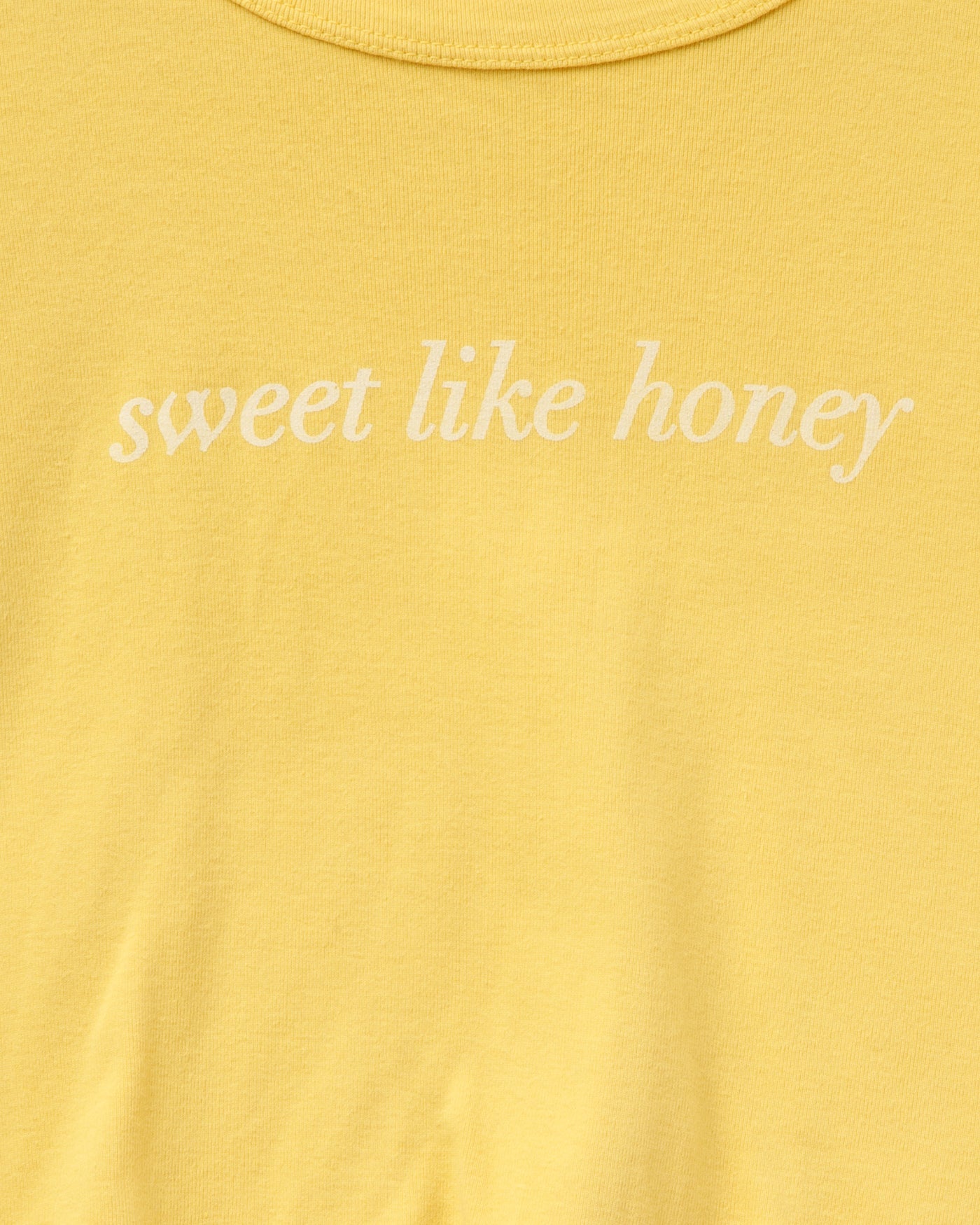 Drip charm in this sunny yellow Sweet Like Honey Baby Tee. With its cropped fit and soft cotton feel, it's playful, flirty, and effortlessly cute. Perfect for layering or rocking solo because you're golden, and everyone should know it.