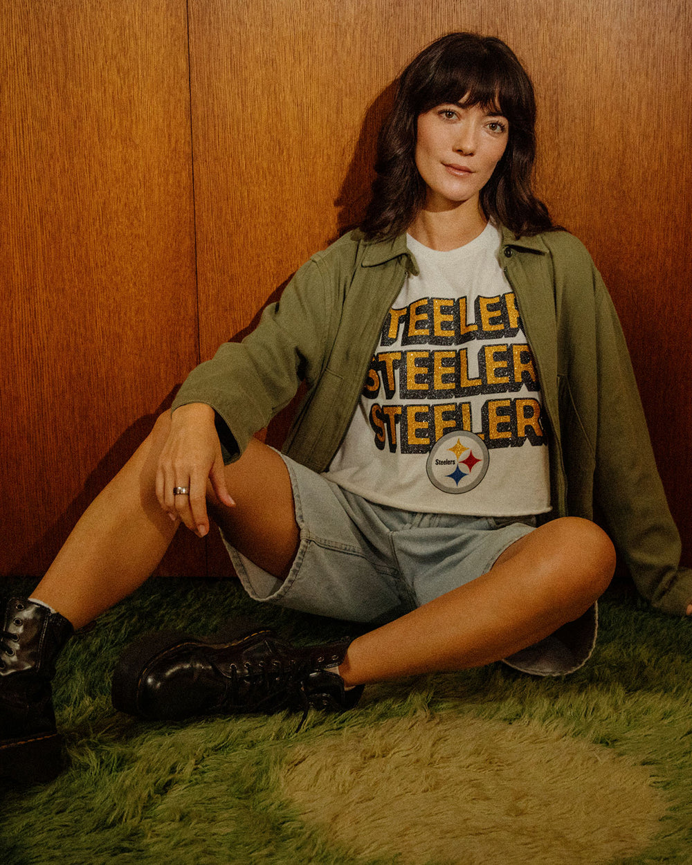 Women's Pittsburgh Steelers Repeat Glitter Flea Market Crop Tee