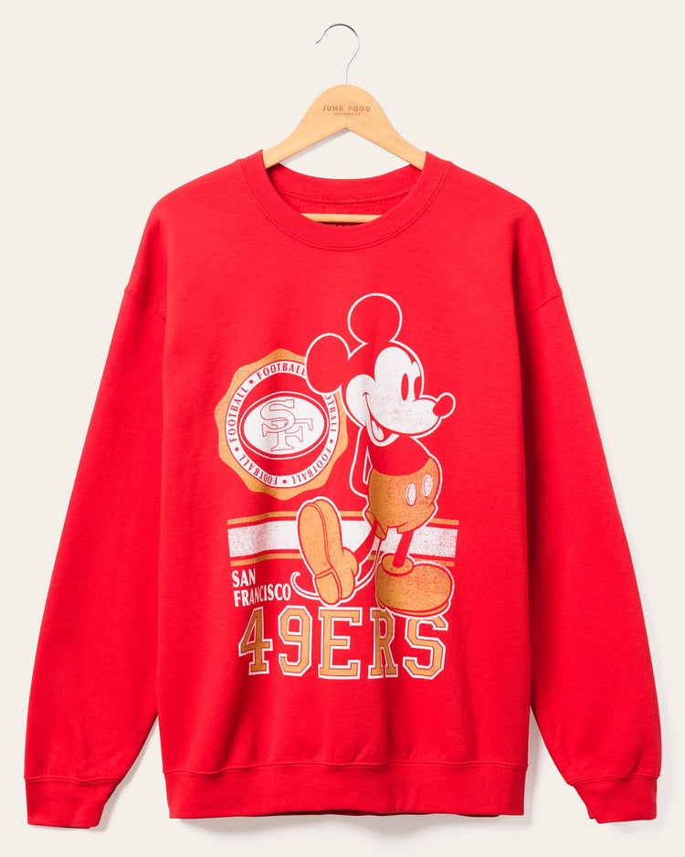 Unite the magic of Disney with the power of the 49ers in our 49ers Mickey Crew Fleece! This enchanting fleece combines the beloved Mickey Mouse with the iconic 49ers logo, creating a one-of-a-kind fan gear. Stay warm and spirited with this cozy fleece, perfect for fans of all ages. Go 49ers!