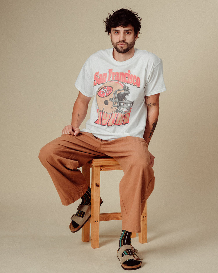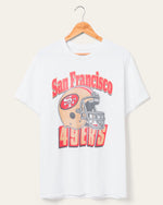 Strap up your helmet and get ready to play in our 49ers Throwback Helmet! This officially licensed 49ers tee is designed for modern fashion while looking back in the past for inspiration. Don't miss out on one of our favorite tees!