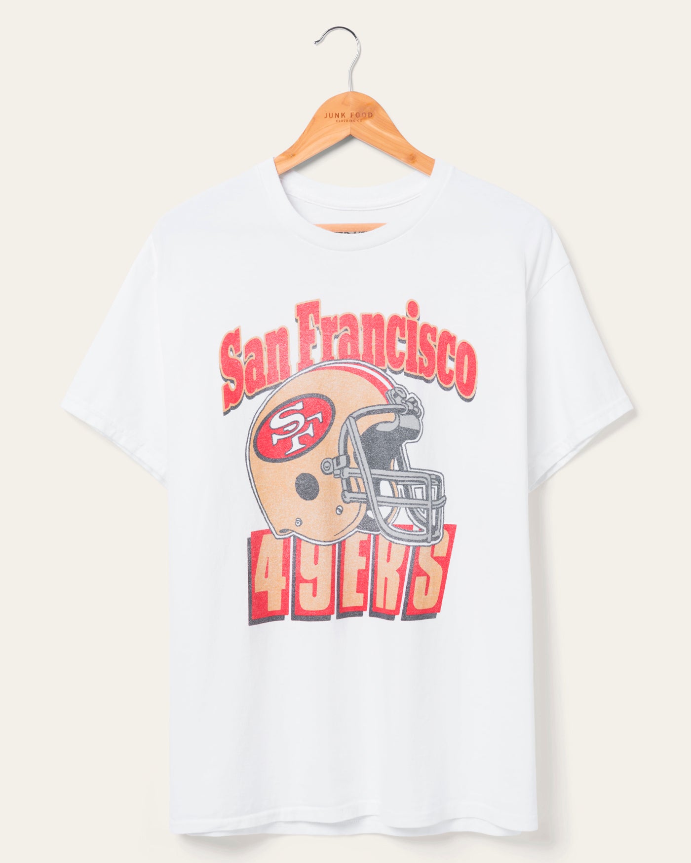 Strap up your helmet and get ready to play in our 49ers Throwback Helmet! This officially licensed 49ers tee is designed for modern fashion while looking back in the past for inspiration. Don't miss out on one of our favorite tees!