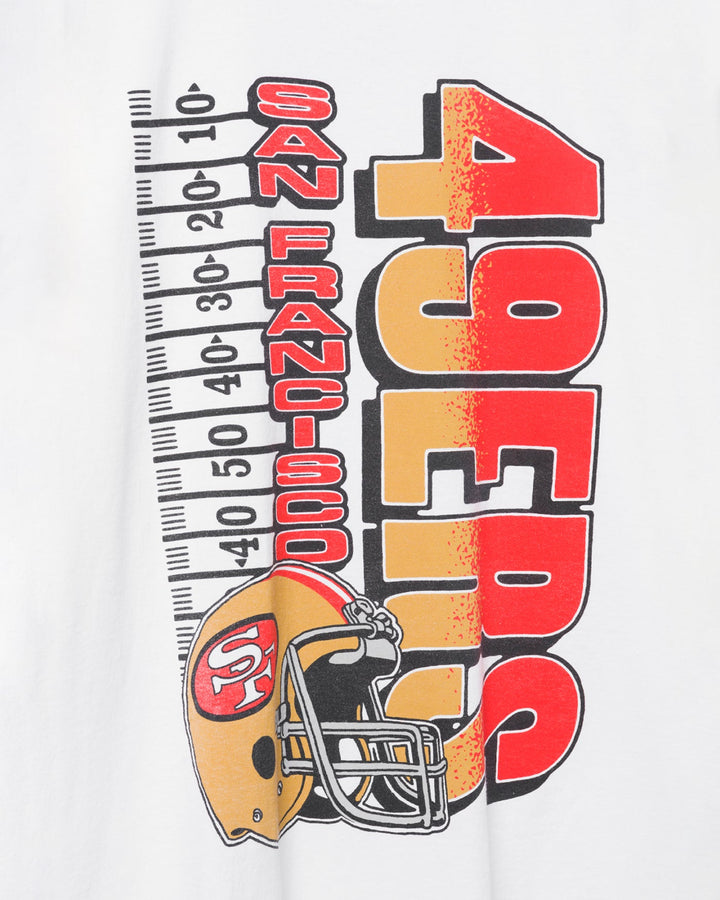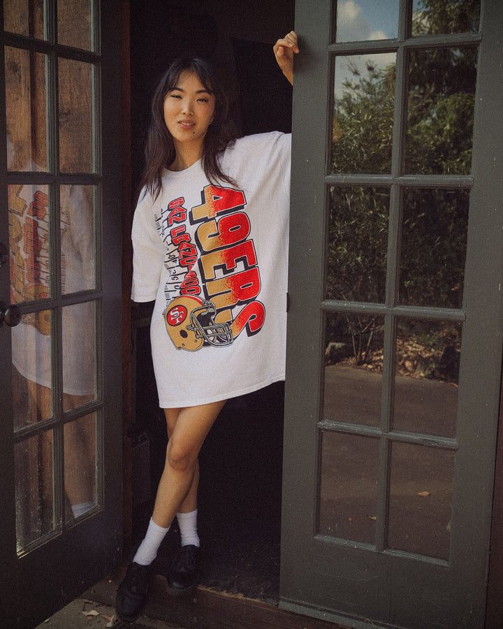 Go the distance in San Francisco fashion with our 49ers Yardage Flea Market Tee! Embrace the gridiron greatness with this uniquely designed shirt that celebrates your team's history and achievements. A winning combination of comfort and style, it's perfect for any 49ers fan looking to stand out on game day!