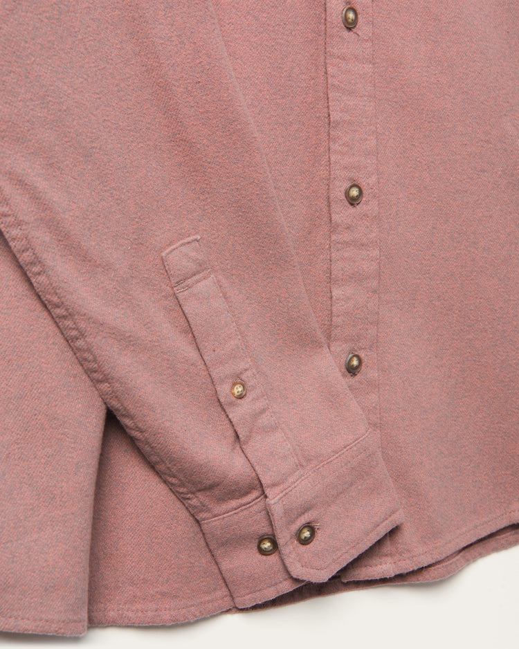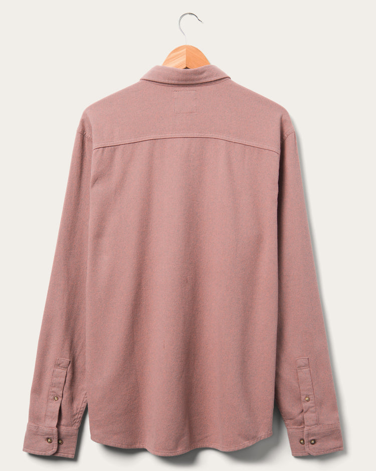 Dress it up or down - the Men's Adrien Long Sleeve Shirt is a versatile piece for your Fall wardrobe. Made of 100% cotton brushed twill flannel and dyed in a subtle light red/mauve Withered Rose, this relaxed fit button down shirt will layer perfectly over your fave JF graphic tee or can be worn solo.