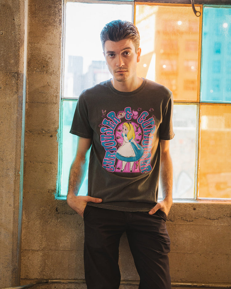 Stay curious in our Unisex Disney's Alice In Wonderland Curiouser Vintage Tee. This Vintage Tee is made of 100% cotton, featuring a groovy graphic with the iconic Alice printed on the front.