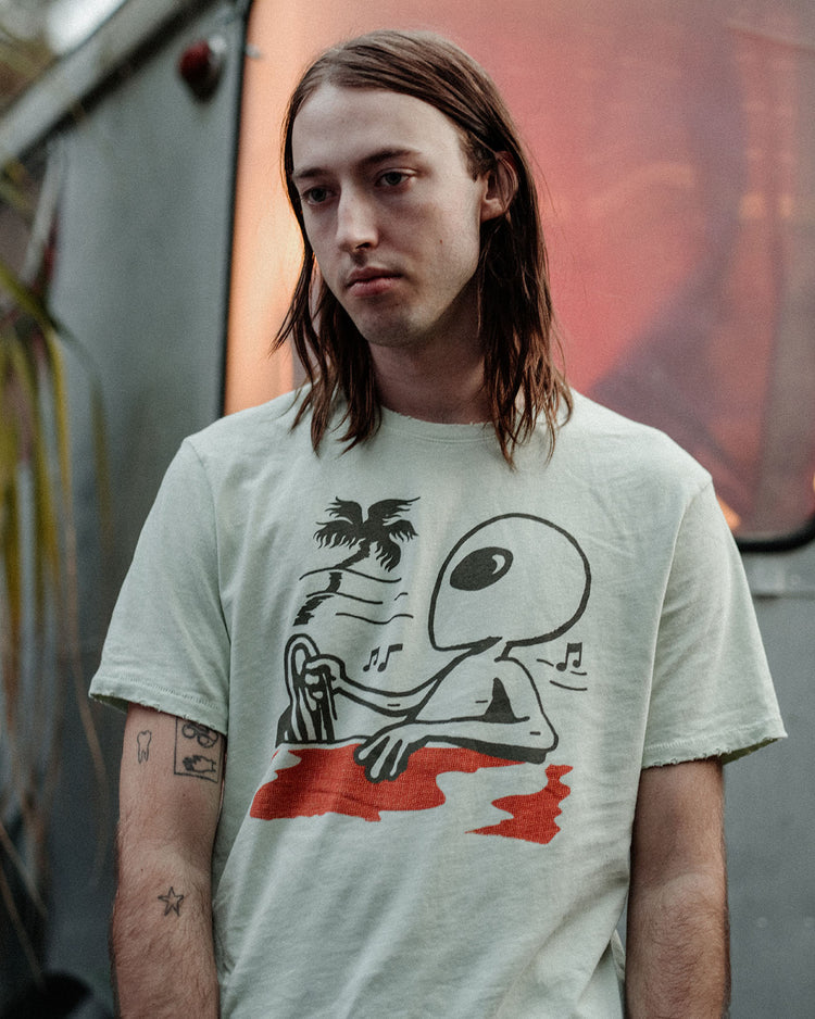 Embark on a cosmic journey with our Alien Driving Vintage Tee. This tee features an extraterrestrial design cruising in retro style, merging the unknown with a touch of nostalgia. Elevate your wardrobe with this intergalactic fashion statement, perfect for those who want to bring an otherworldly edge to their everyday style.