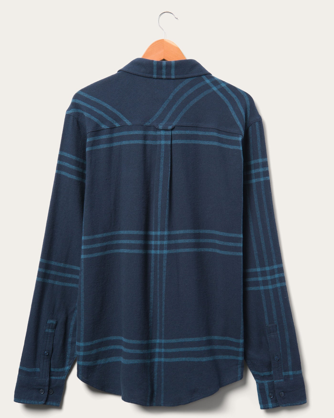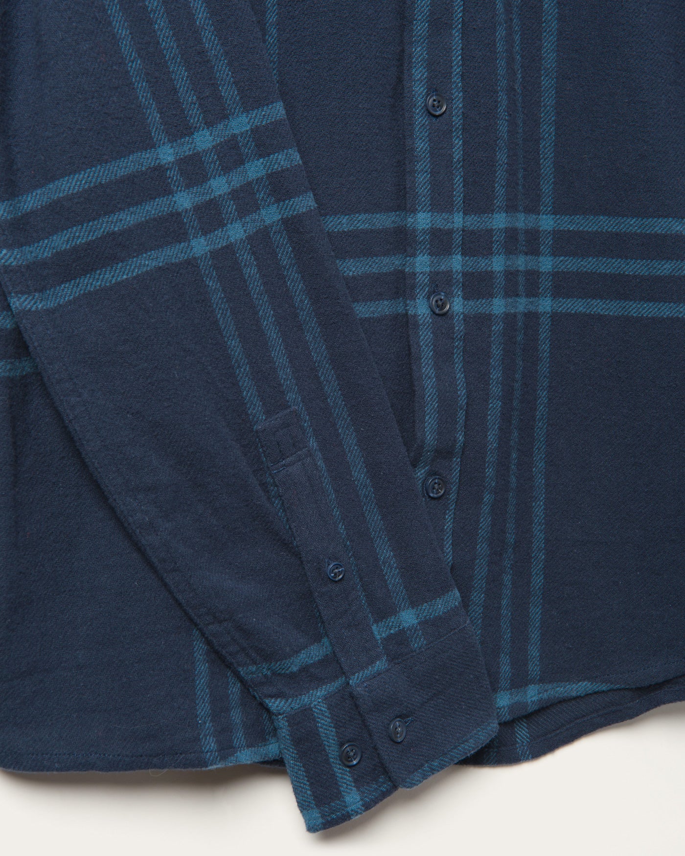 Our Men's Arlan Long Sleeve Shirt in navy color Outerspace features an oversized plaid print and will be your new layer-up go-to. This 100% cotton brushed yarn-dyed poplin features a classic fold collar, left chest pocket and button front placket. The long sleeves also feature a button sleeve cuff with placket. We gave this flannel an enzyme wash to give is that lived-in and loved feel you can't get enough of.