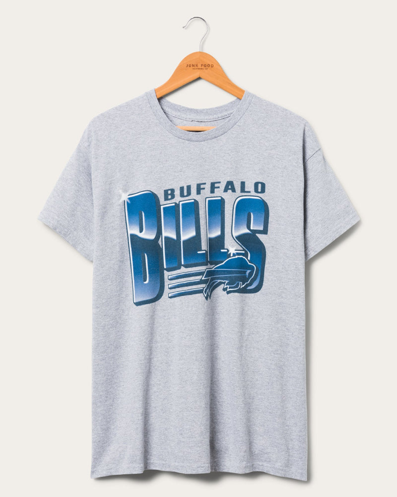 Score a touchdown of style with our Bills Chrome Flea Market Tee! Celebrate your team's glory with this eye-catching design, combining vintage charm and modern flair. Crafted for comfort and fandom, it's a must-have for every Buffalo supporter. Gear up now and showcase your Bills pride wherever you go!