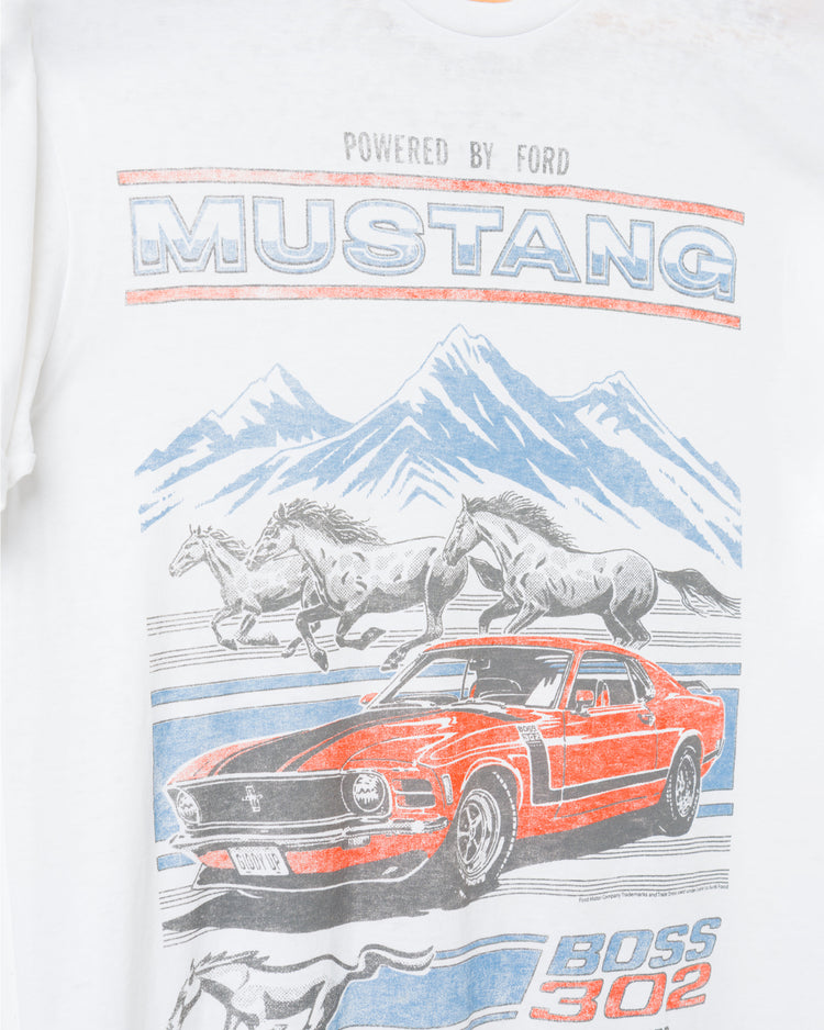 Rev up your style with our Mustang Boss 302 Flea Market Tee. Inspired by classic muscle cars, this vintage-inspired tee showcases the legendary Boss 302 graphic. Crafted from premium cotton with a burnout fabric treatment, it offers comfort and durability. Whether you're a gearhead or a fan of retro aesthetics, this tee is a must-have addition to your wardrobe.