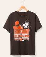 Experience ultimate comfort and fandom with the Browns Mickey Kick Back Tee! This officially licensed NFL apparel showcases the perfect blend of Cleveland Browns team spirit and Mickey Mouse's timeless charm. Relax in style and let your passion for football and fun shine through with this must-have shirt. Touchdowns guaranteed!