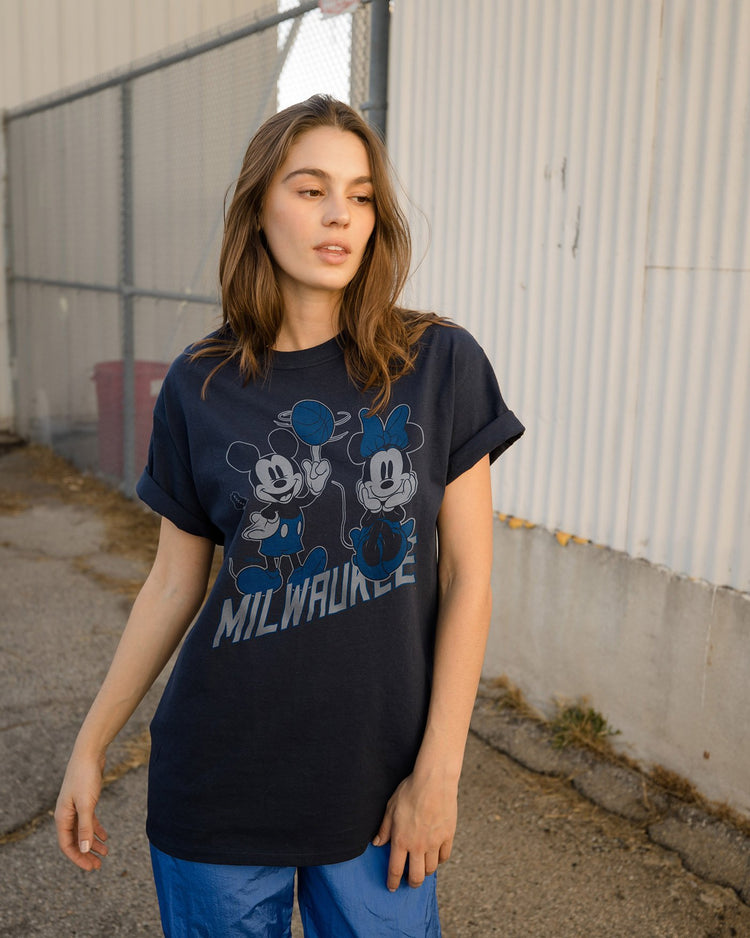 Now your favorite Disney tee features the popular NBA City Edition art that is exclusive to Junk Food. Featured on our 100% cotton tee and finished with our signature enzyme was that gives it that extra soft worn-in quality. The original ballers, Mickey and Minnie, provide the perfect look-and-feel to your new favorite vintage sports tee.
