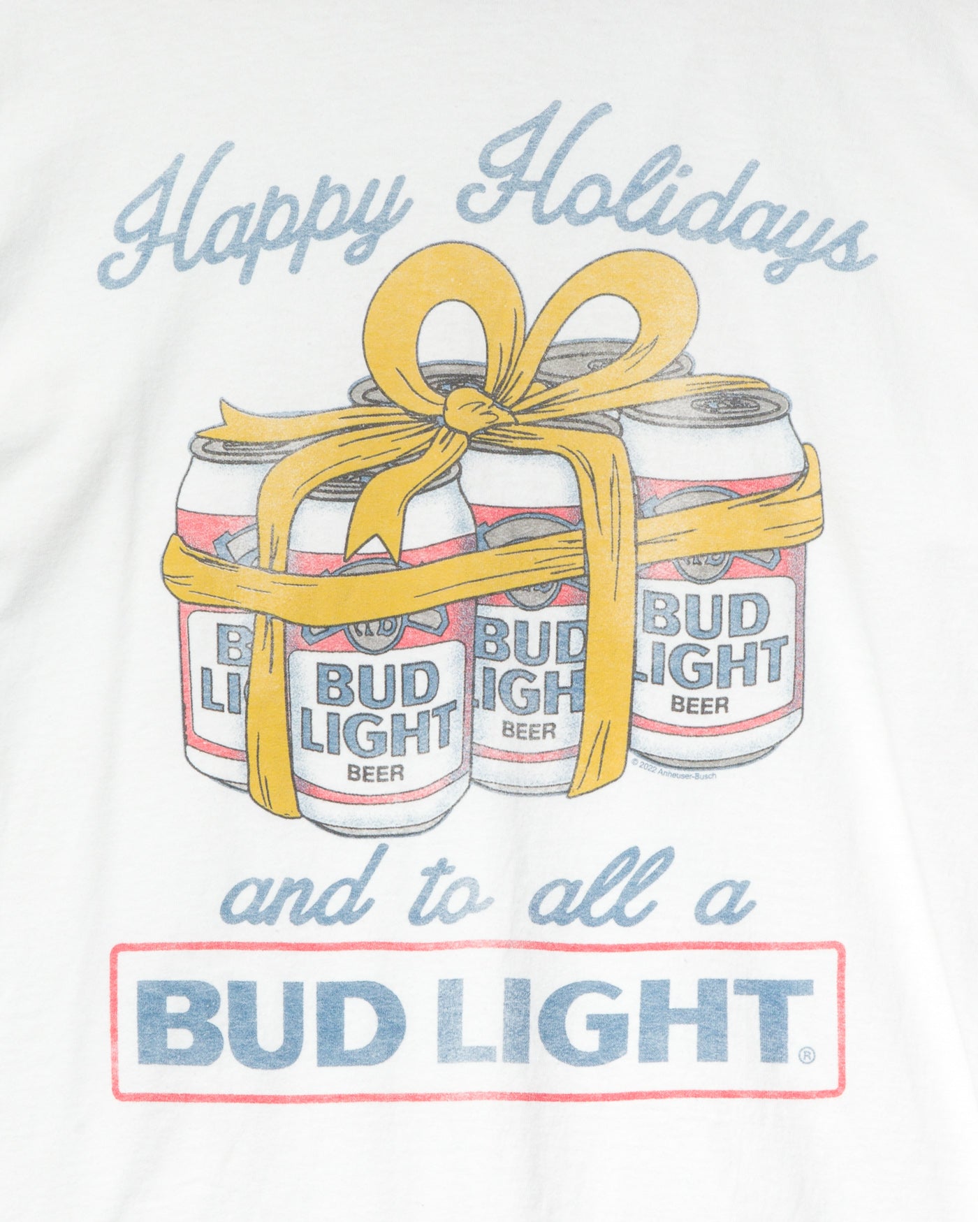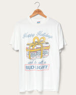 Nothing says it's the holidays like beer. Check out our Bud Light Holidays Flea Market Tee! Featuring a festive Bud Light graphic on the front of the tee. Made from authentic 100% heavyweight cotton and featuring a distress wash to give it that lived in feel! Cheers to a happy holidays!
