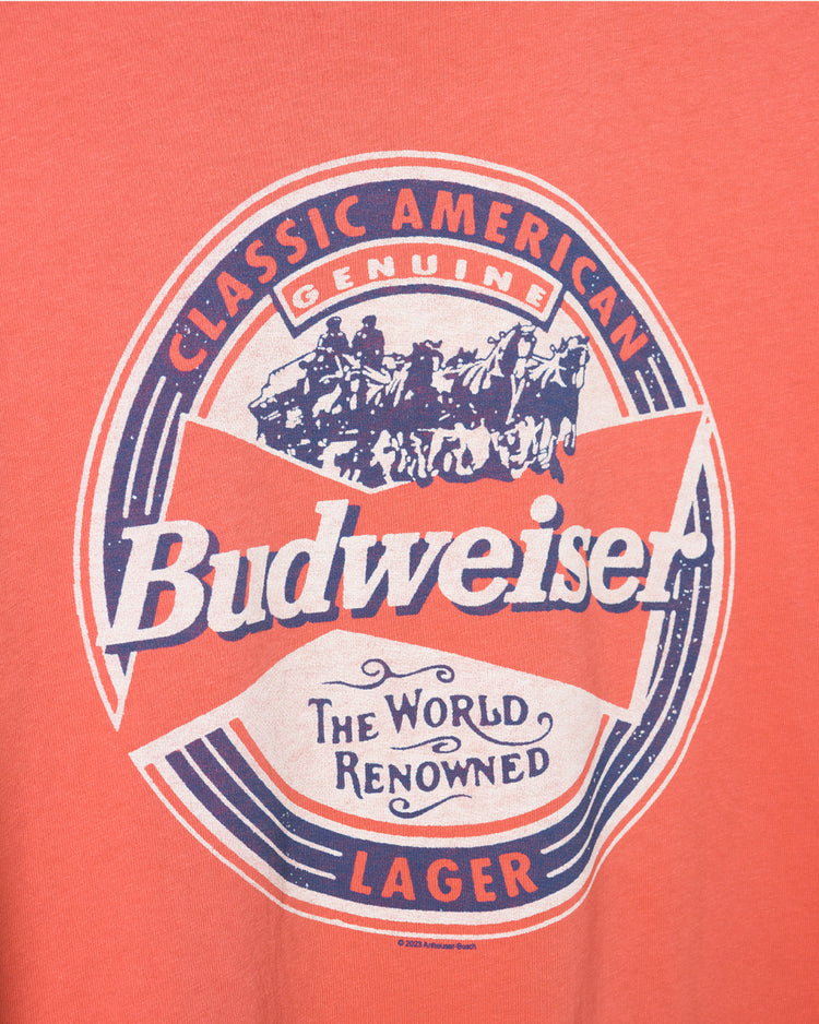 Raise a toast to American heritage with our Budweiser Classic American Vintage Tee! This iconic design captures the essence of the renowned beer brand. With its vintage-inspired look and comfortable fit, it's the perfect choice for beer enthusiasts and fans of timeless Americana. Embrace the spirit of the red, white, and brew with this classic addition to your wardrobe!