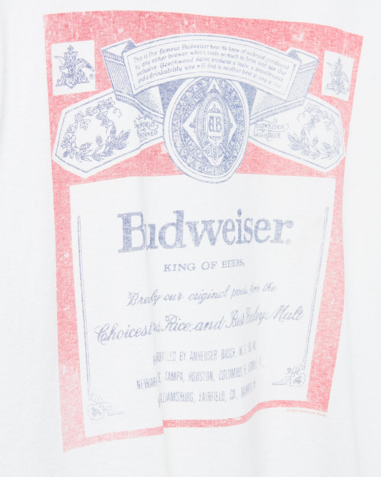 This Bud's for you! Try pairing our Budweiser Classic Flea Market Tee in White with your fave pair of jeans for your next Sunday Funday outfit. Our Flea Market Tee is made of 100% cotton and has been given our signature distress wash, so it feels extra lived in and loved.