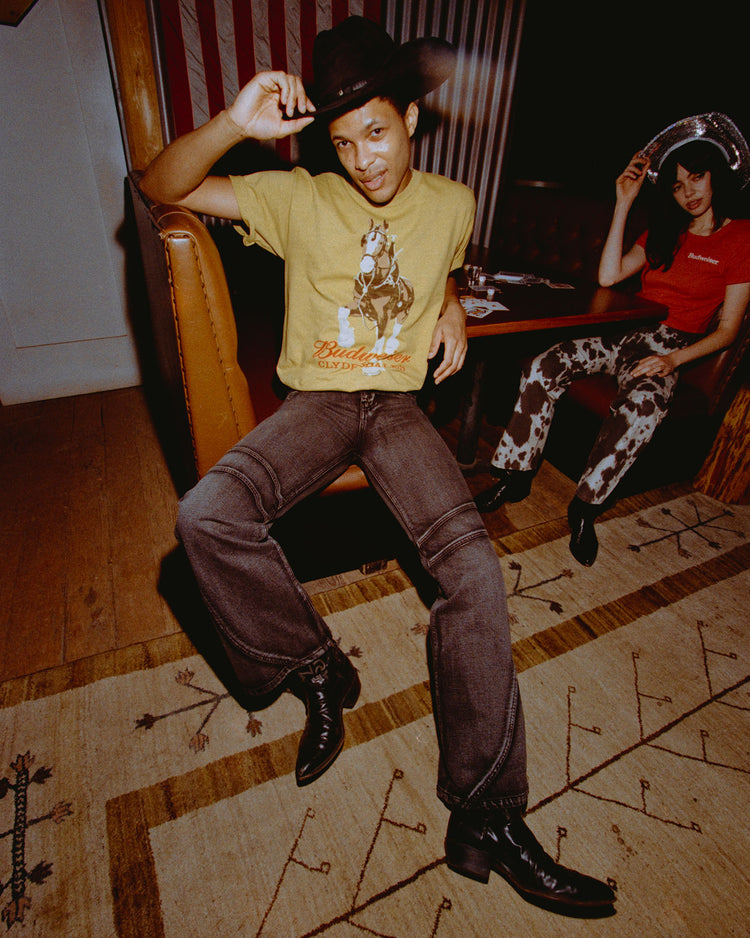 Channel vintage vibes with the Budweiser Clydesdale Pose Flea Market Tee. Featuring a bold graphic of the iconic Clydesdale horse, this relaxed-fit tee in golden olive is a must-have for beer lovers and retro-style fans. Crafted from soft, lived-in fabric for effortless comfort and timeless appeal.
