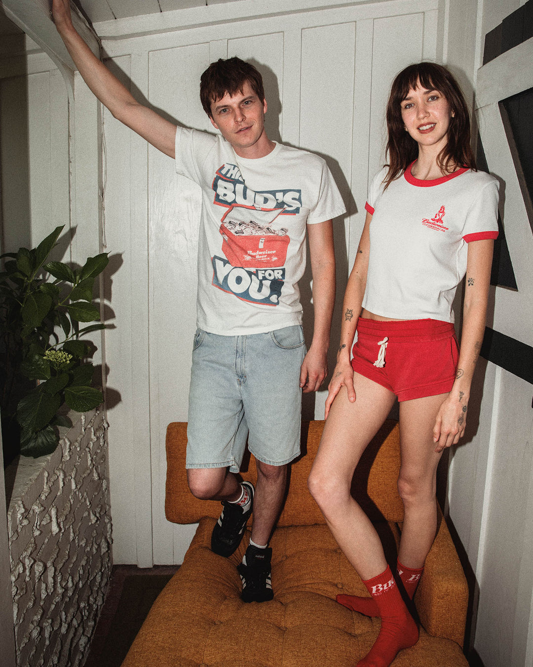 Crack open classic style with the Budweiser "This Bud’s For You" Flea Market Tee. Featuring a vintage-inspired beer cooler graphic on a soft, lived-in white tee, this one’s for the true Bud fans. Perfect for backyard hangs, game days, and good times.