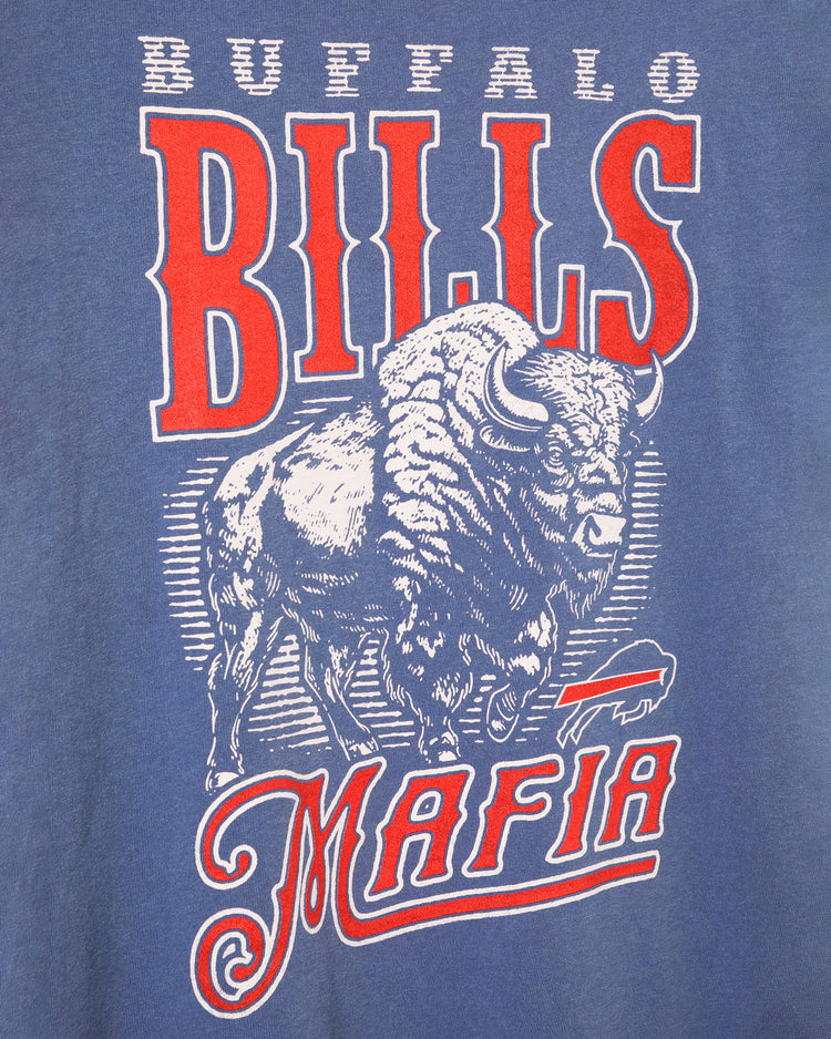 Rep your Bills Mafia pride in this vintage-inspired tee! Featuring bold Buffalo graphics and a distressed wash, it’s the perfect blend of style and comfort for die-hard fans. Whether you're cheering from the stands or the couch, this shirt keeps your loyalty front and center. Go Bills!