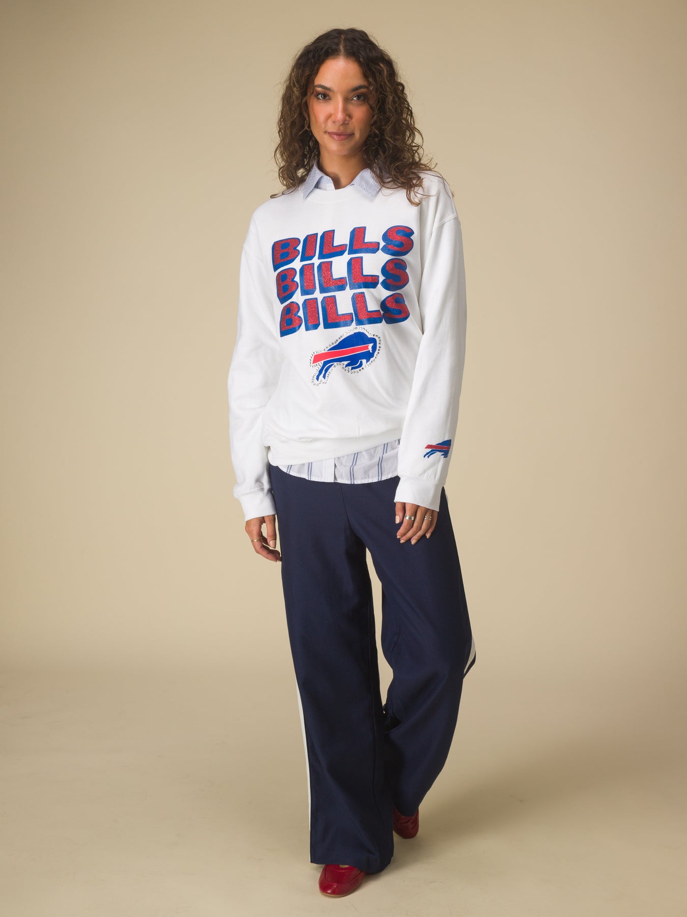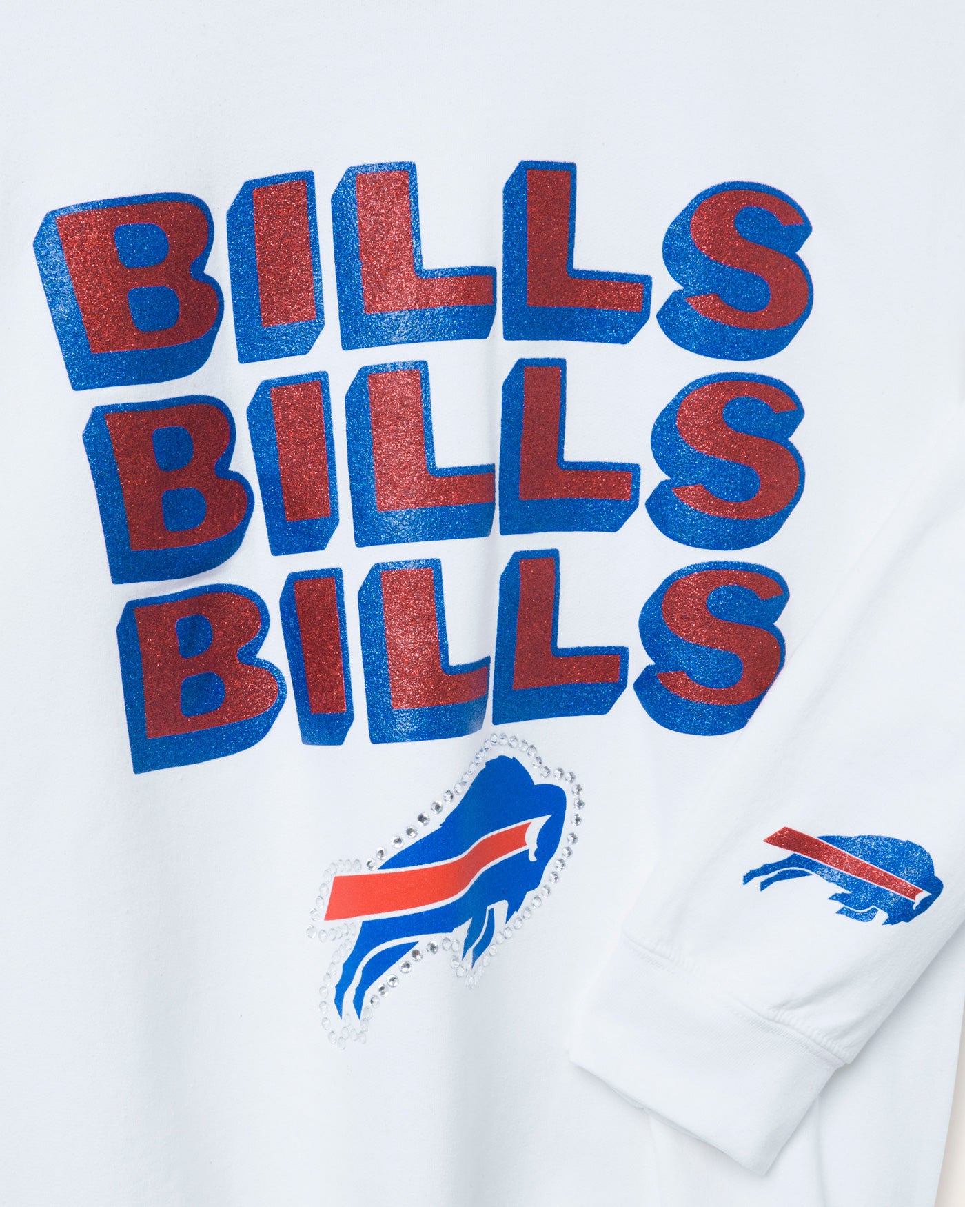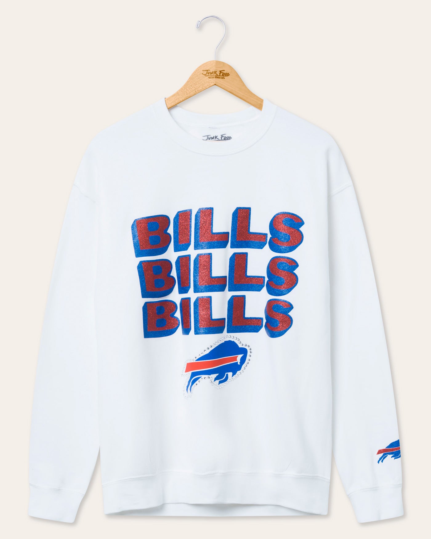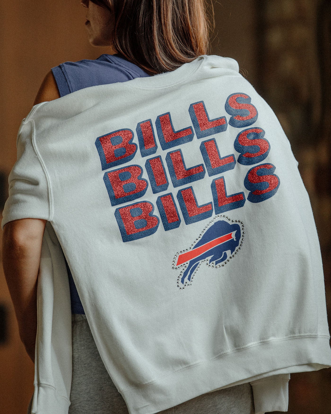 Turn up the shine with the Buffalo Bills Repeat Bling Flea Market Crew Fleece. Featuring bold stacked Bills glitter graphics and a rhinestone-embellished buffalo logo, this cozy fleece brings sparkle to your game day style. With vintage vibes and standout details, it’s the ultimate look for true Bills Mafia fans.