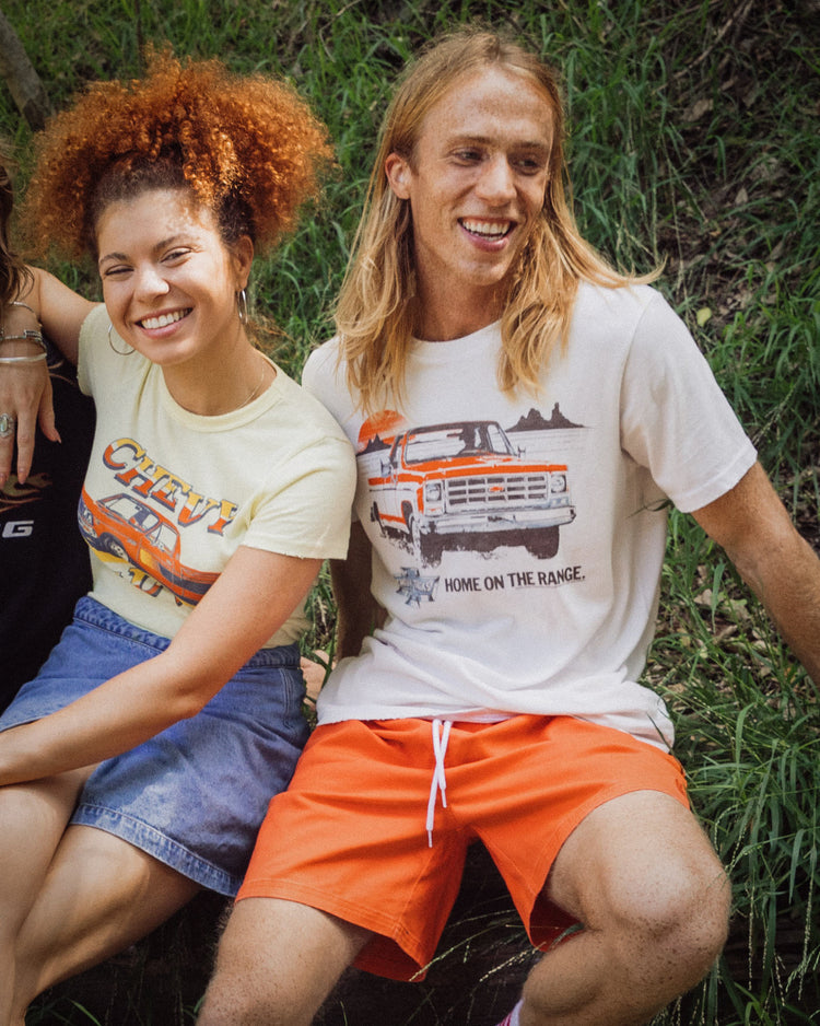 Hit the open road in style with our Chevy Trucks "Home on the Range" Vintage Tee. This shirt embodies the rugged spirit of American trucking. With classic design and a tribute to Chevy's enduring legacy, it's the perfect fit for those who find their home wherever their Chevy takes them.