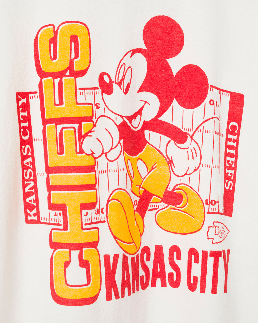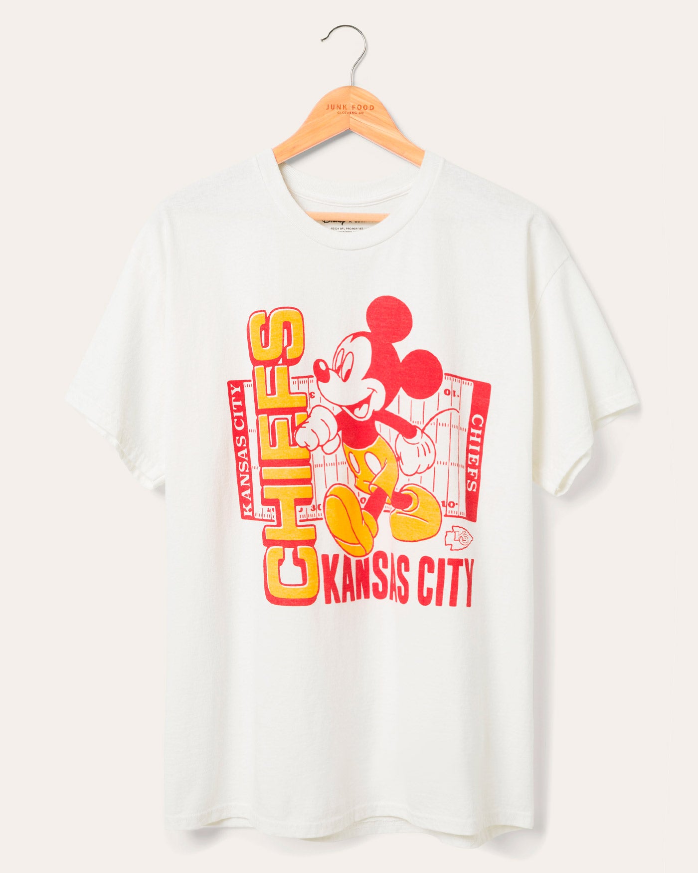 Gear up for game day with the Chiefs Mickey Field Tee! This officially licensed NFL apparel brings together your love for Kansas City Chiefs and the timeless charm of Mickey Mouse. Show off your team spirit in style and make a winning statement wherever you go. Touchdowns and magic guaranteed!
