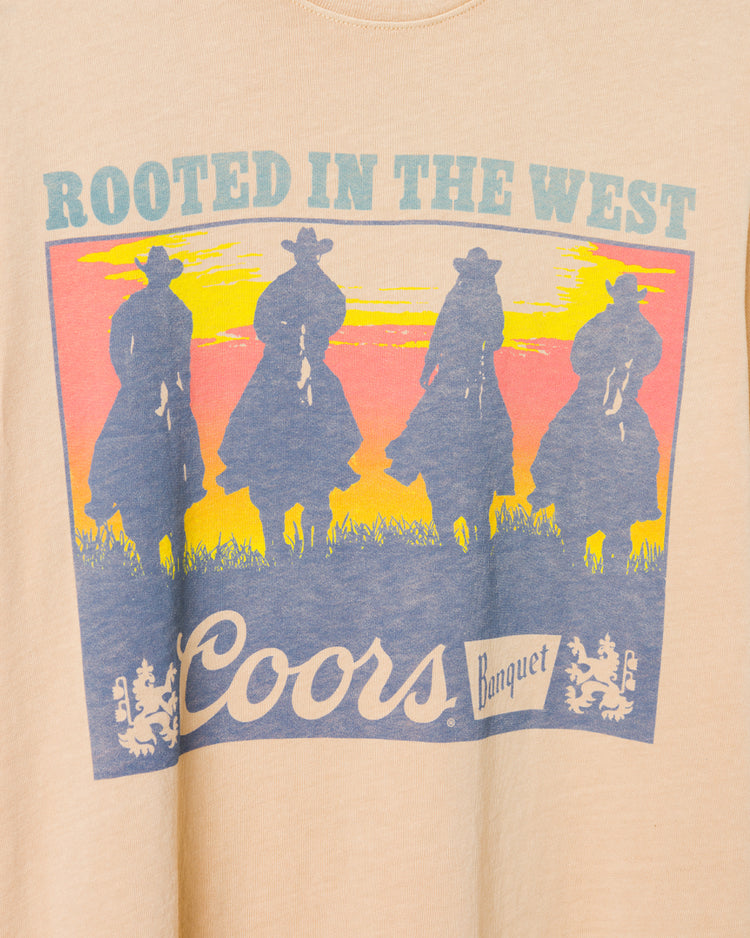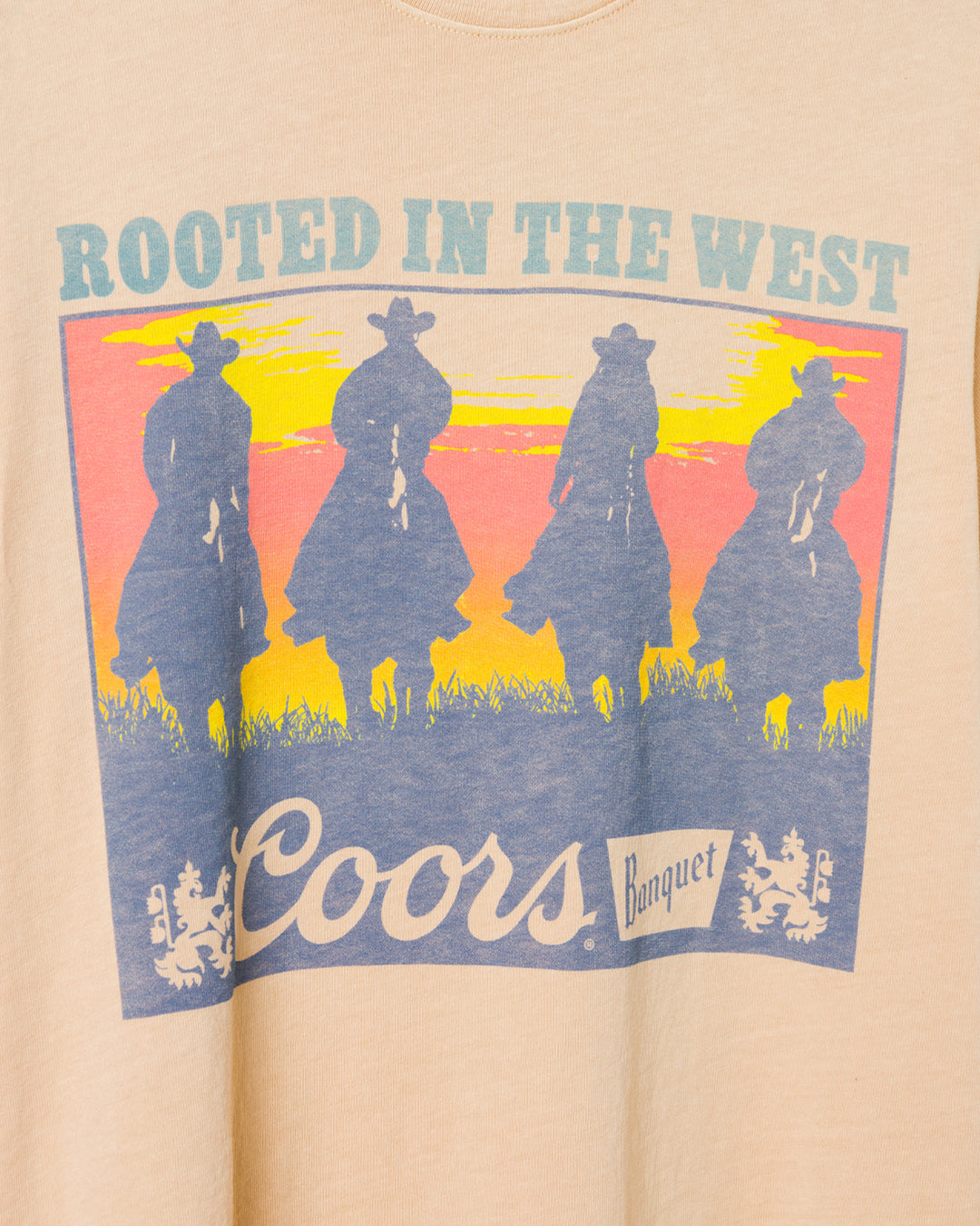 Celebrate the spirit of the West with our Coors Rooted in the West Vintage Tee! Inspired by the legendary beer brand, this tee embodies the rugged charm of the frontier. With its vintage design and comfortable fit, it's perfect for beer enthusiasts and lovers of Western heritage. Raise a glass and show your roots!