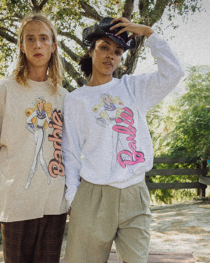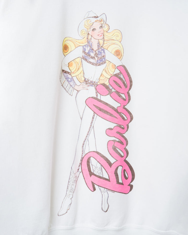 Unleash your inner cowgirl with the Cowgirl Barbie Flea Market Fleece. Combining cozy warmth and vintage charm, this fleece showcases iconic Barbie imagery with a western twist. Whether by the campfire or in the city, embrace the spirit of adventure and style with this unique and comfortable fleece.
