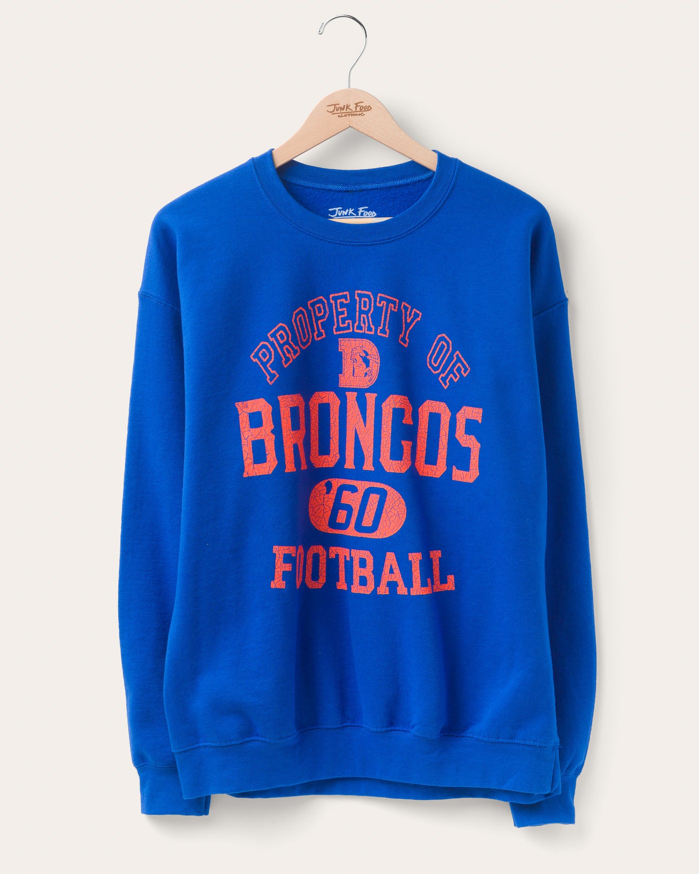 Rep Denver like you just scored it at a vintage flea. This Broncos crew fleece delivers old school athletic vibes with bold, cracked graphics and that perfectly broken in feel. Cozy, classic, and full of Broncos pride this one’s made for true fans who like their football gear with attitude.