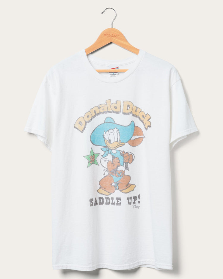 Saddle up and ride into style with our Donald Goes West Flea Market Tee. Printed with an iconic Donald Duck graphic where he's dressed up as a cowboy. This tee is perfect for any occasion whether you are out adventuring or just hanging at home.