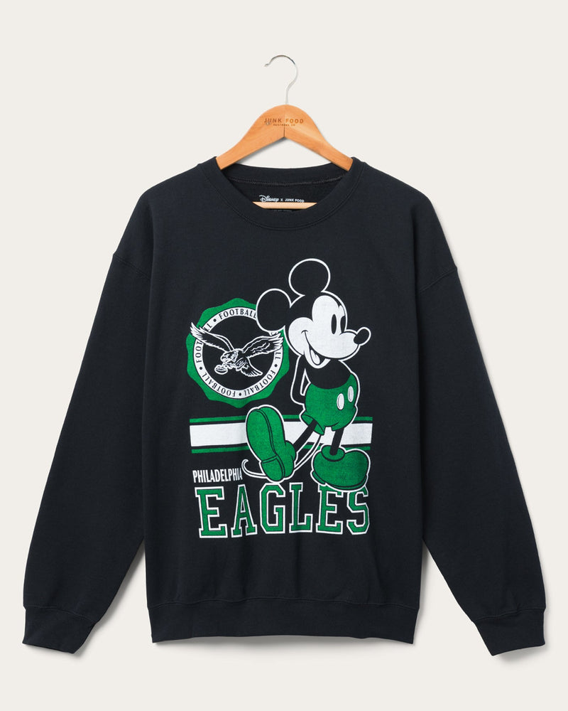Unite the magic of Disney with the power of the Eagles in our Eagles Mickey Crew Fleece! This enchanting fleece combines the beloved Mickey Mouse with the iconic Eagles logo, creating a one-of-a-kind fan gear. Stay warm and spirited with this cozy fleece, perfect for fans of all ages. Go Eagles!