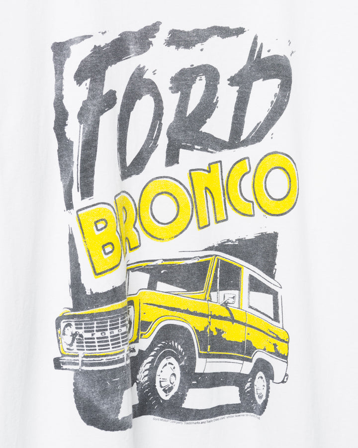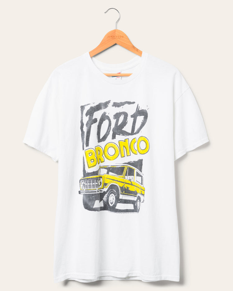 Cruisin' into vintage style with our Ford Bronco Flea Market Tee. Reviving the rugged charm of classic Broncos, this tee is a tribute to off-road adventures and timeless design. Featuring a distressed look, it's a nod to the past that effortlessly combines retro vibes with a touch of automotive nostalgia. Drive your style forward.