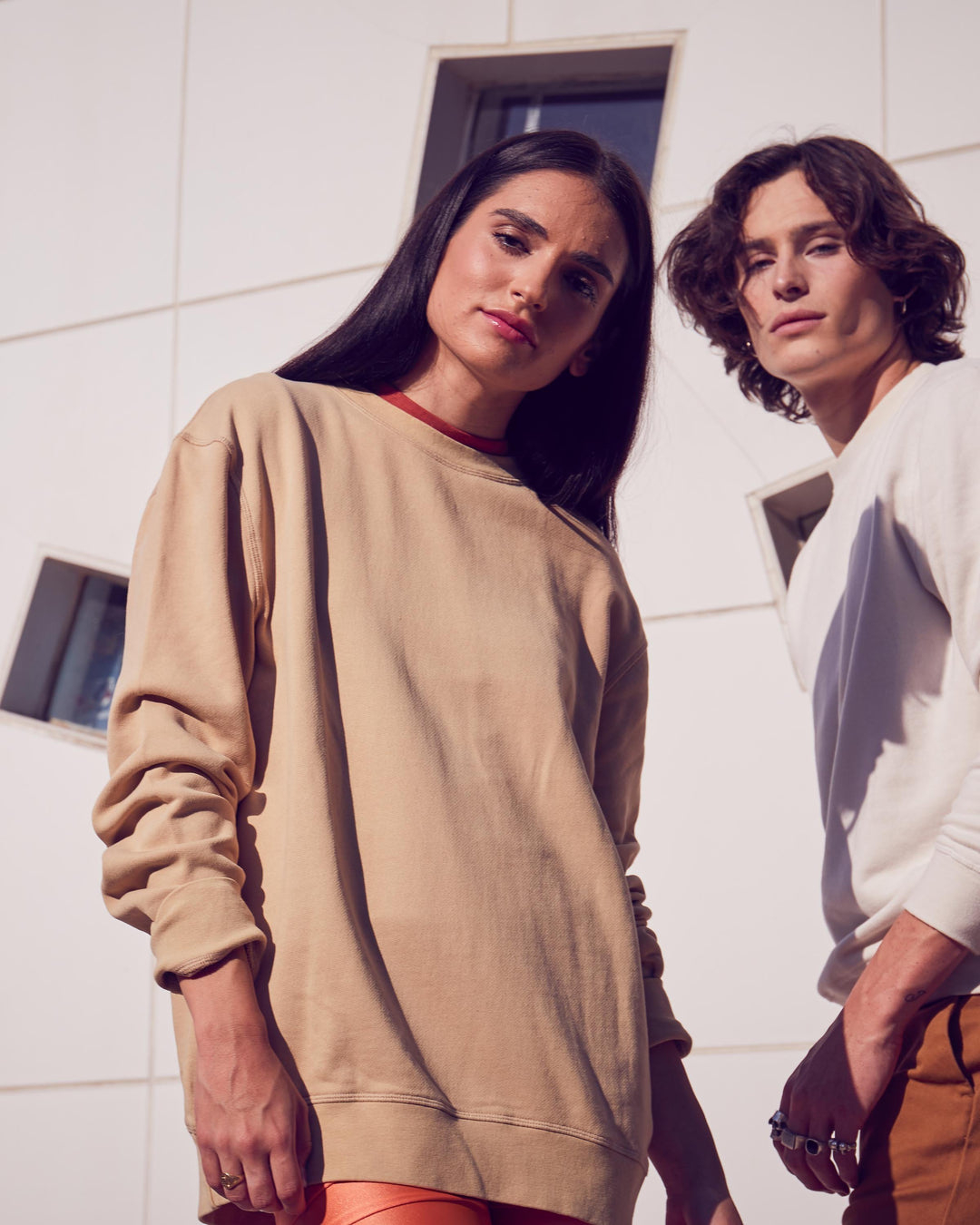 We believe sweatshirts are universal & meant for sharing. Made in our softest brushed french terry, with a laid back oversized fit & the perfect washed back colors achieved by garment dying. The perfect layer to wear on the days you’re feeling super casual, or to throw on over your favorite tees.