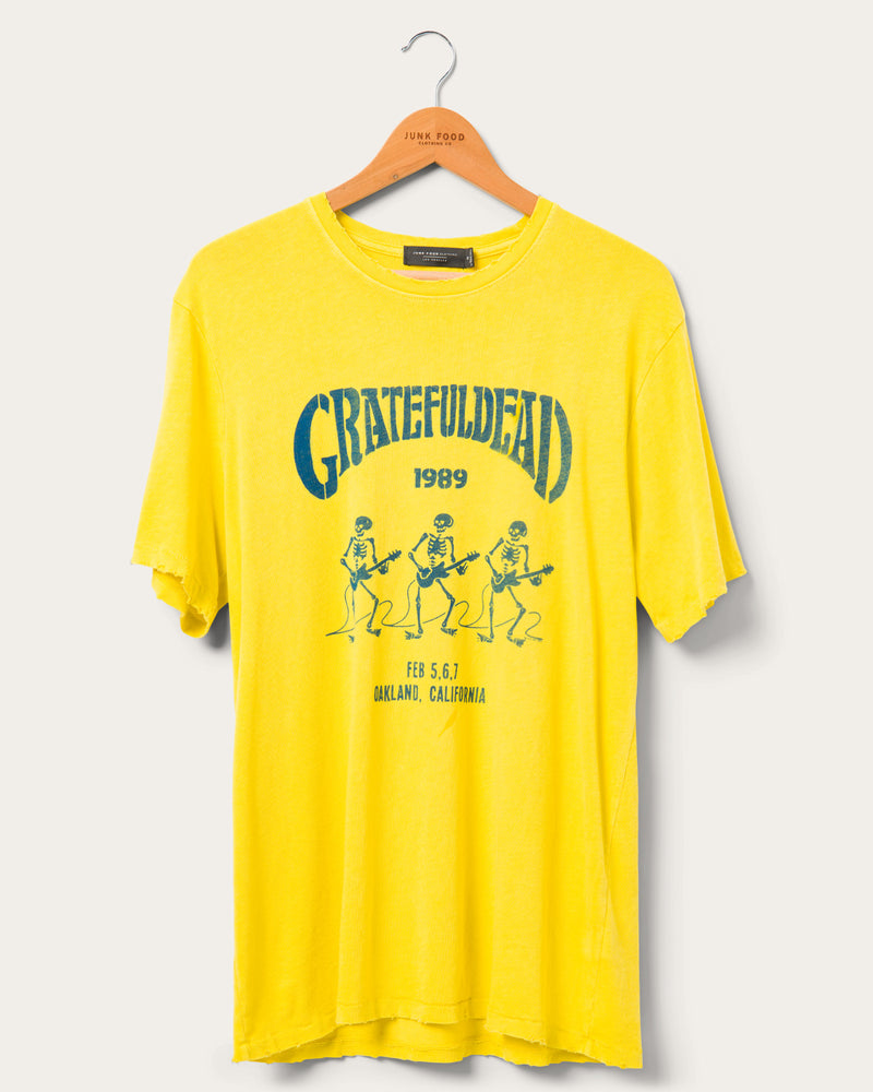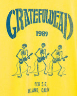 Jam with the band in this Grateful Dead Guitar Skeletons '89 Vintage Tee in Sulphur. Our Vintage Tee is made of 100% cotton and features distress details like grinding on the neck, sleeve and hem. It is our signature tee and feels like the lived-in, thrift store tee you just can't get enough of.