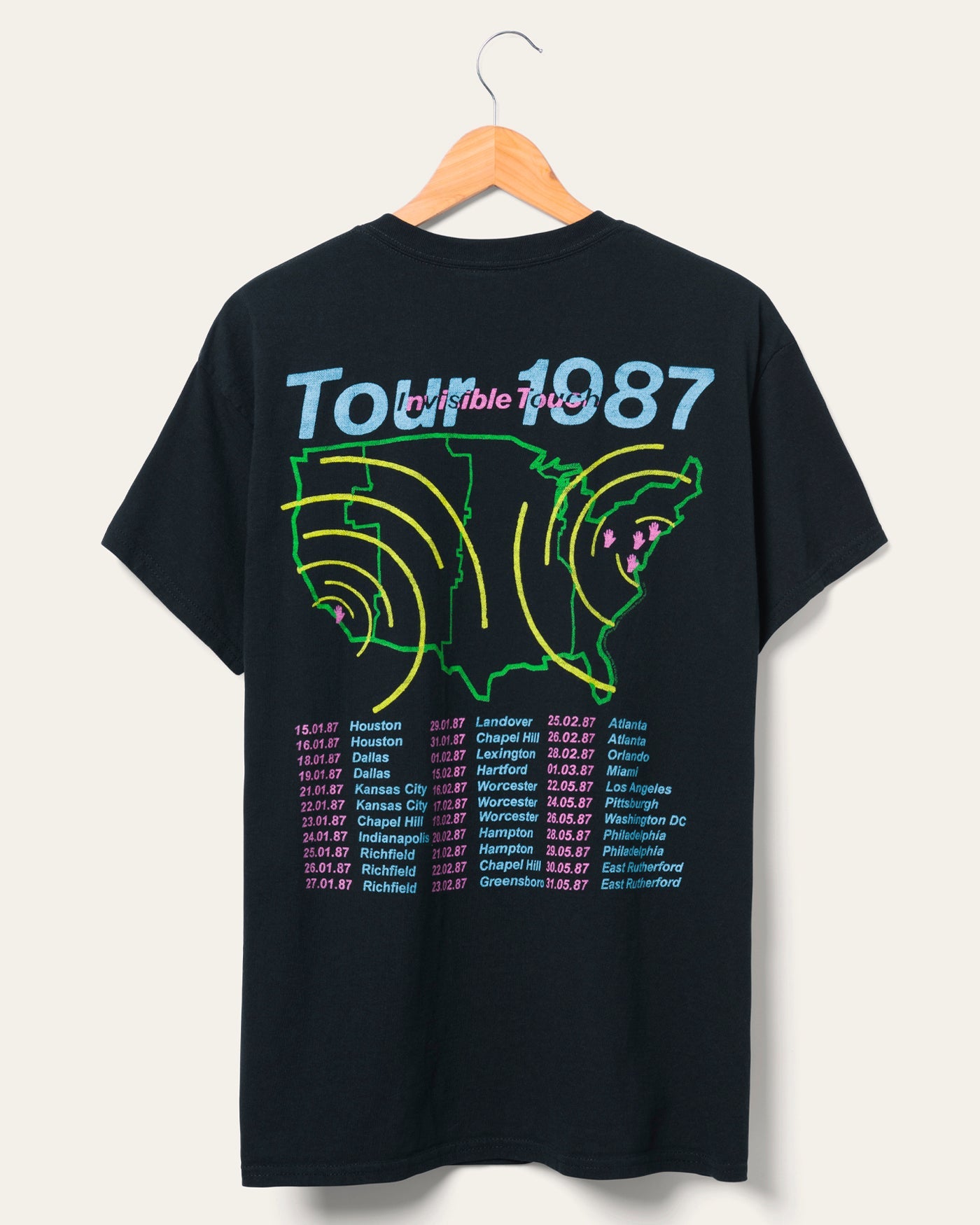 Celebrate the legendary Genesis tour with our Genesis Invisible Touch Tour 1987 Flea Market Tee. Featuring a graphic of all the European stops on the front, and a graphic of all the US stops on the back, this tee is ready to rock.