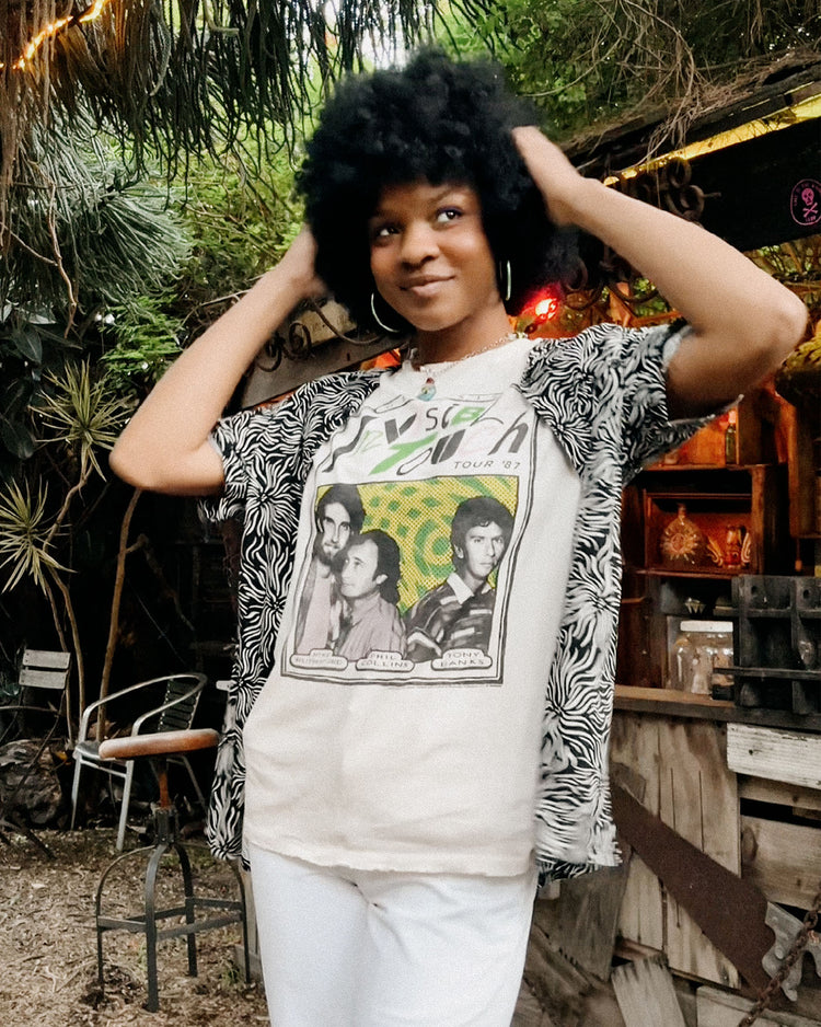 Step back in time with our Invisible Touch Tour '87 Vintage Tee. Commemorating the iconic Genesis tour, this tee is a time capsule of '80s nostalgia. The vintage design captures the magic of their music as pioneers of progressive rock, creating a stylish homage to a legendary era. Elevate your wardrobe with this retro-inspired masterpiece and relive the musical journey.