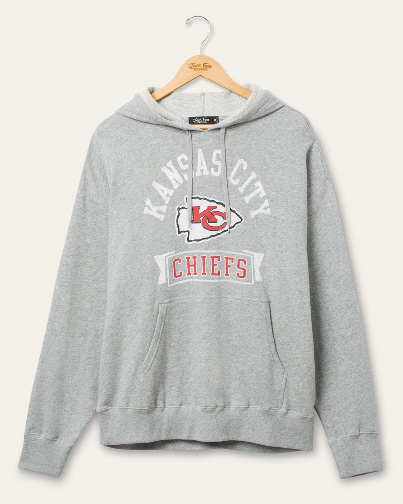 Gear up in comfort and team pride with the Kansas City Chiefs Scrimmage Hoodie. Featuring bold vintage inspired graphics and the iconic Chiefs logo, this soft fleece hoodie delivers warmth and classic style. With a roomy fit and kangaroo pocket, it’s perfect for game days, tailgates, or everyday wear.