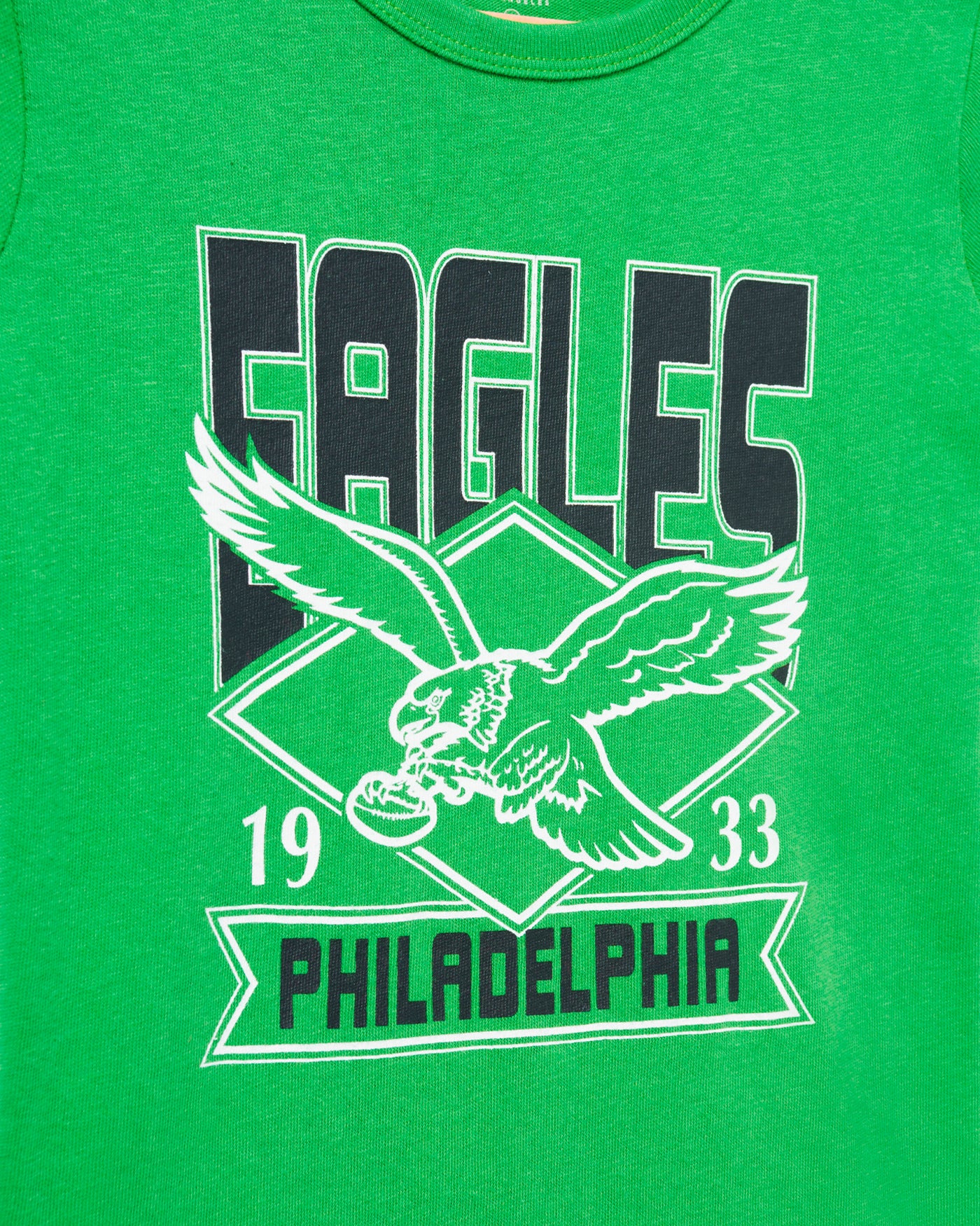 Gear up this season with our Kids Eagles Overtime Tee. This 100% cotton tee features each team’s iconic colors, logo and inaugural year in a Junk Food original graphic. Comfortable and stylish, this officially licensed NFL tee is ready for action on and off the field.