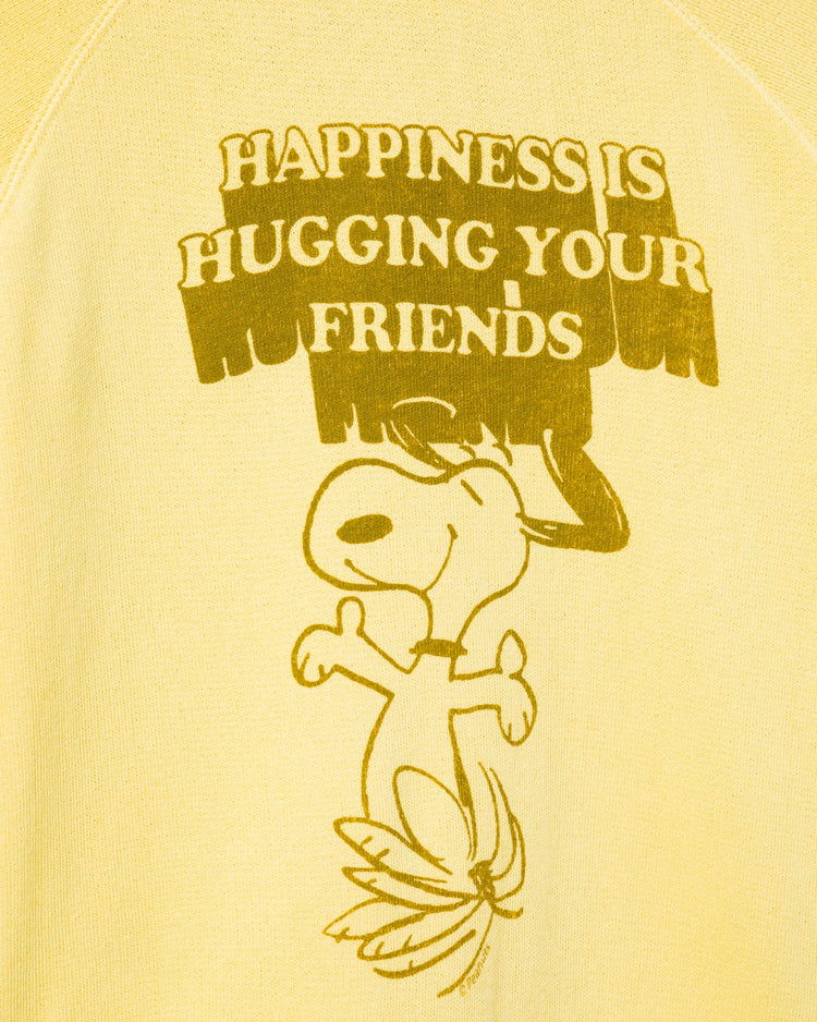 Snuggle up in style! This Kids Peanuts Raglan Fleece in sunny yellow features Snoopy spreading joy with Happiness is Hugging Your Friends. Perfectly soft and cozy, it’s the ultimate feel-good sweatshirt for your little one. Crafted for comfort, it’s ideal for playtime or cuddle time!