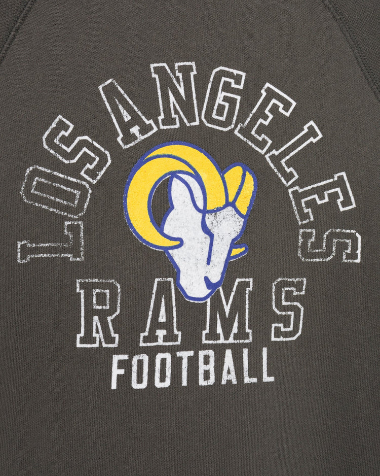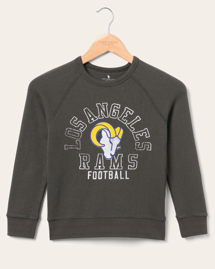 Get game day ready with our Kids Rams Flocked Raglan Crew. Our French terry fabric is made from 100% cotton and features a flocked print with soft raised texture for that vintage look and feel. This officially licensed NFL crew is the perfect way to rep your team in comfort and style this season