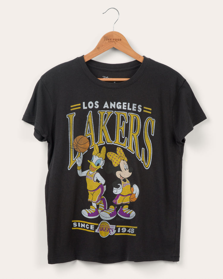 Step into the court with a touch of Disney magic wearing our Lakers Disney Squad Tee! Join the ultimate dream team as your favorite Disney characters shoot hoops in Lakers gear. With playful and vibrant design, this tee is a slam dunk for Suns fans and Disney lovers alike. Unite your fandoms and let the fun begin!